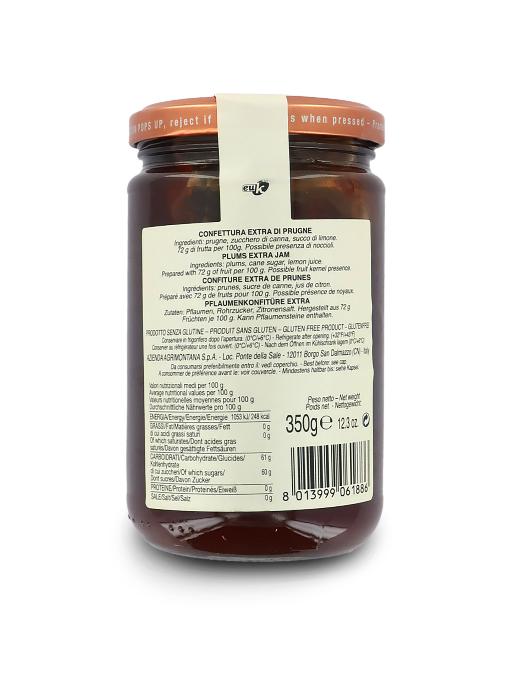 12 Vasetti Di Confettura Extra Di Prugna, 350 Grammi L'Uno (Tot. 4,2 Kg)