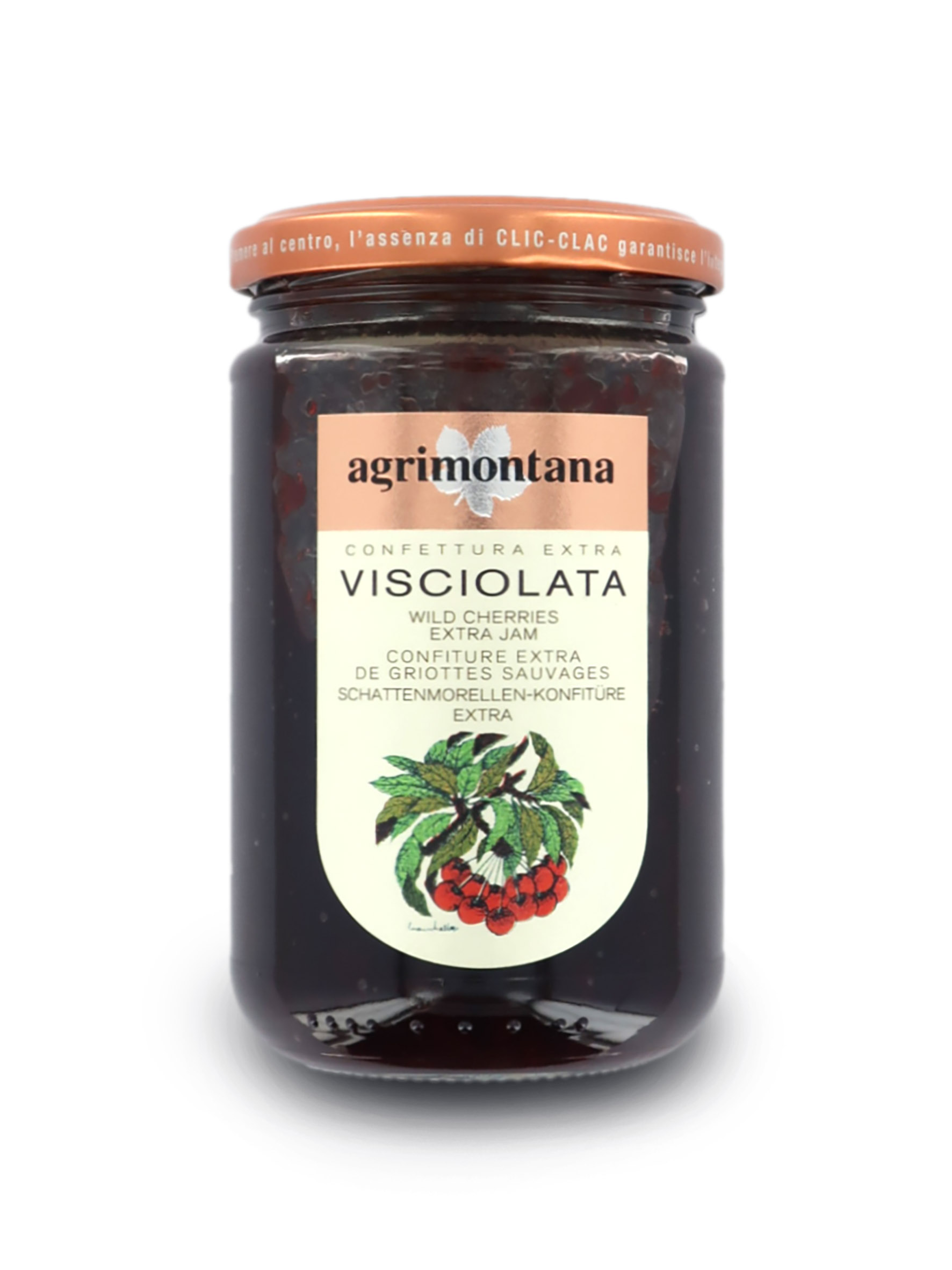 12 vasetti di confettura extra di ciliegia "visciola" da 350 grammi (12 x 350g = 4 chili e 200 grammi di confettura). Per la sua realizzazione s'impiegano soltanto visciole italiane di prima qualità, che vantano una dolcezza maggiore rispetto alle classiche ciliegie.