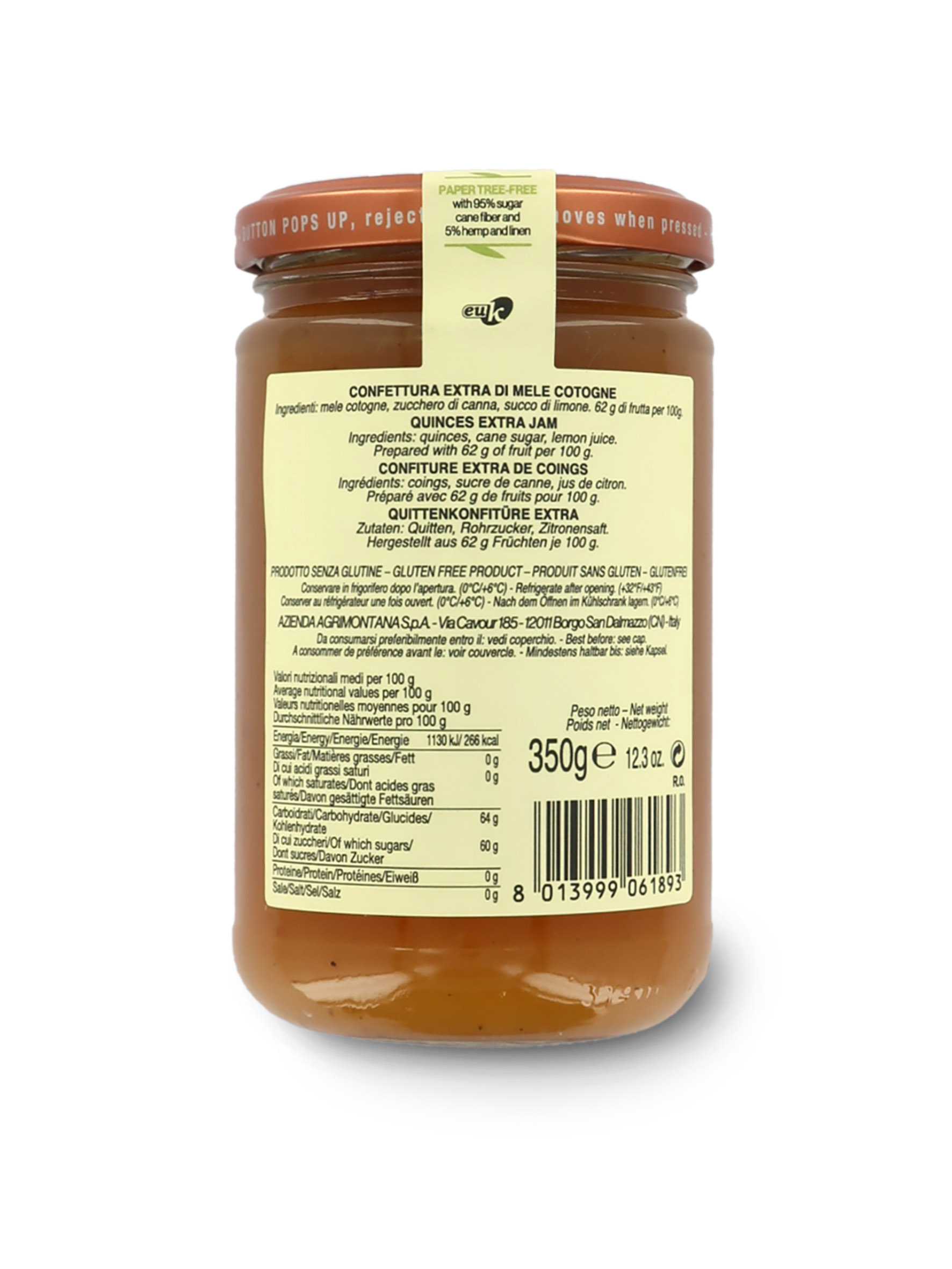 Confettura extra di mele cotogne in vasetto da 350 grammi.