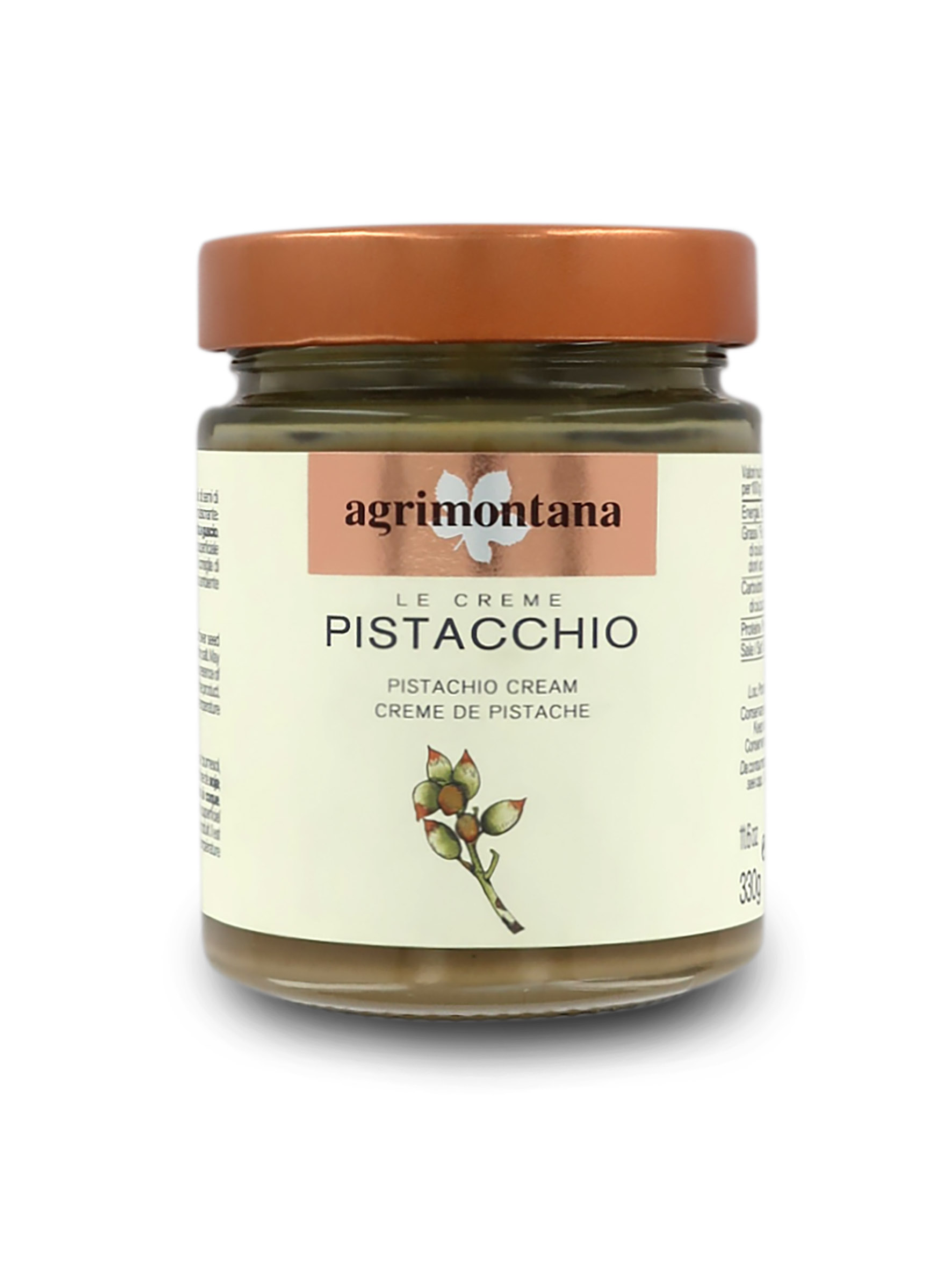 Crema di pistacchio realizzata con pistacchi Feudo San Biagio®, antico feudo della valle del fiume Platani. Si tratta di un blend di grands crus di pistacchi dal sapore caratteristico, intenso e distintivo, che conferisce alla crema spalmabile un gusto unico e delicato.