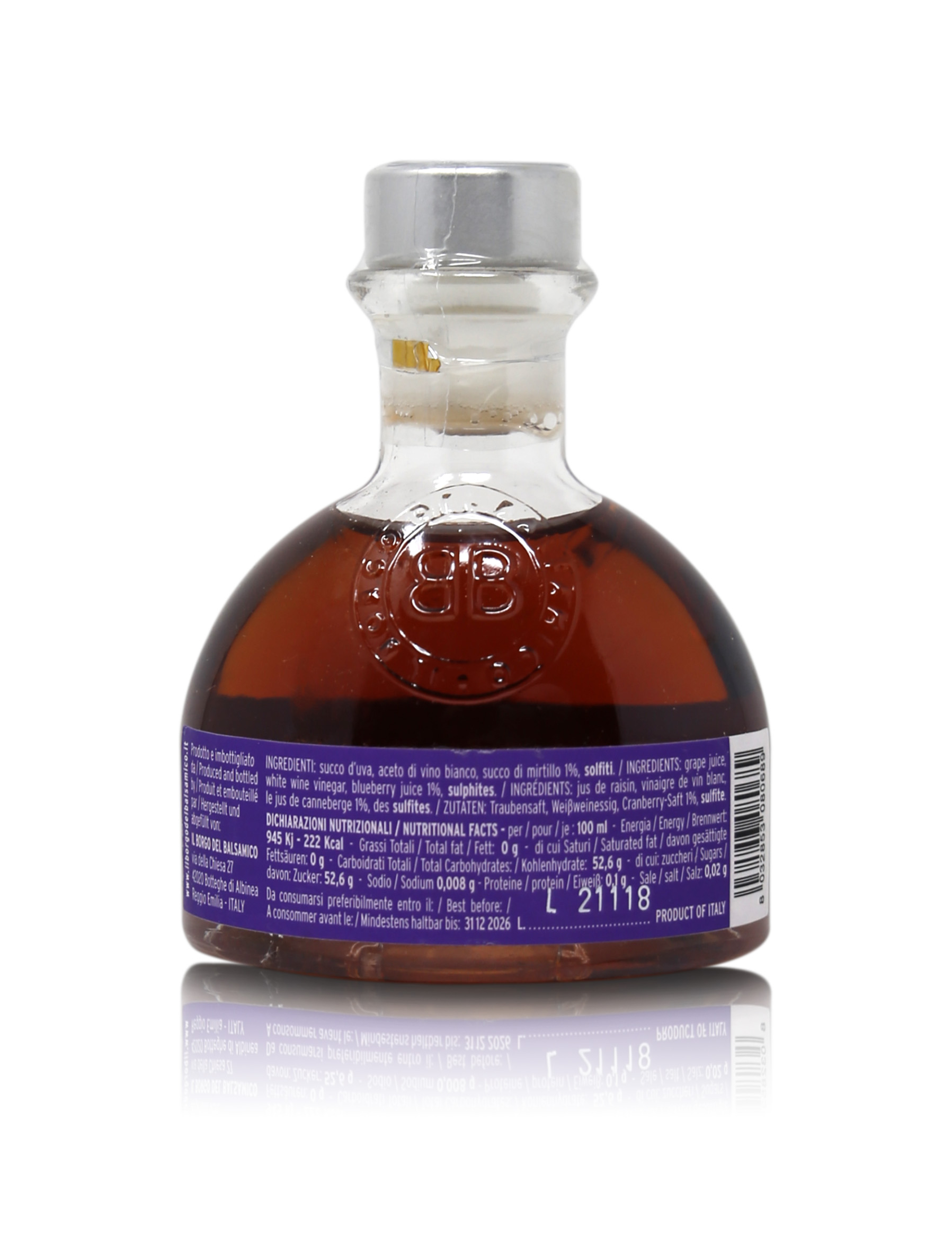 Il Condimento al mirtillo è ottenuto da un mix di succo d’uva acetificato e mirtillo. È ottimo per insalate fresche con frutta e verdura ed è interessante anche utilizzato come ingrediente per cocktail. Perfetto per marinare pesce crudo.