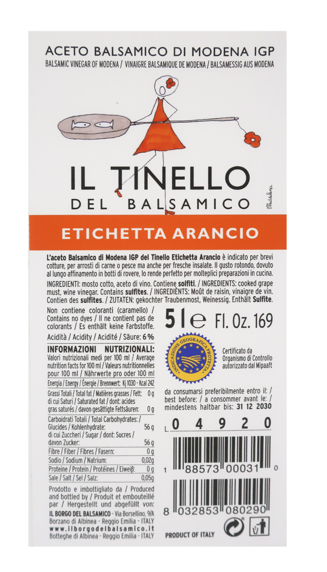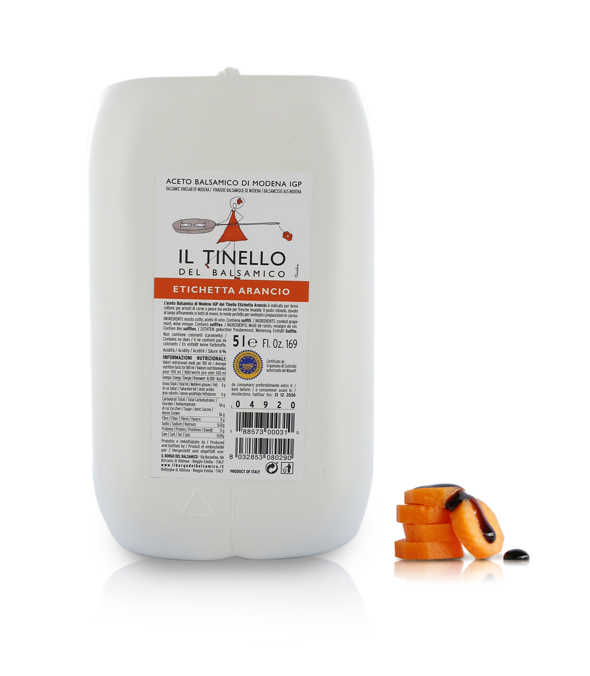 Tanica di Aceto Balsamico di Modena IGP, 5 litri , etichetta arancio