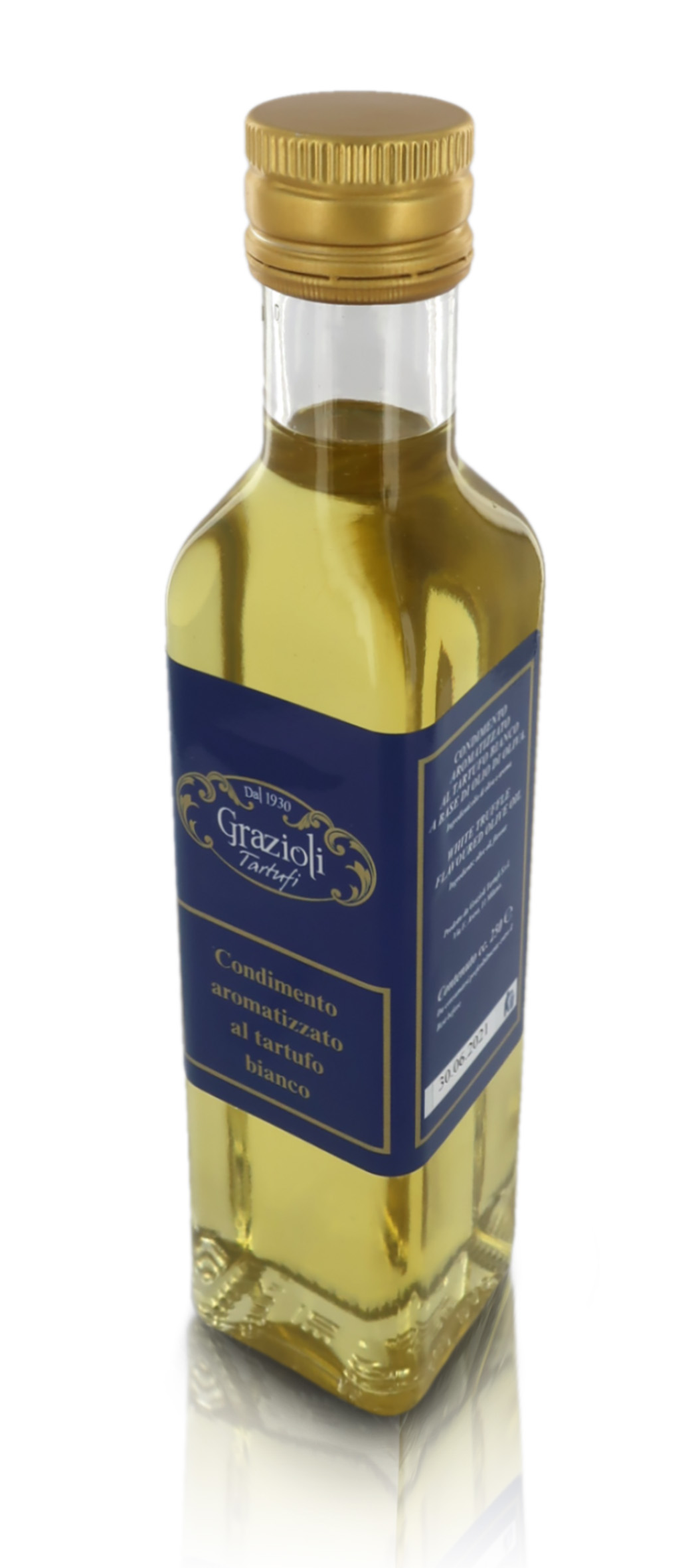 Grazioli Tartufi Olio al Tartufo Bianco, Olio di Oliva Aromatizzato al Tartufo, Condimento Insaporito con Aroma di Tartufo 250ml