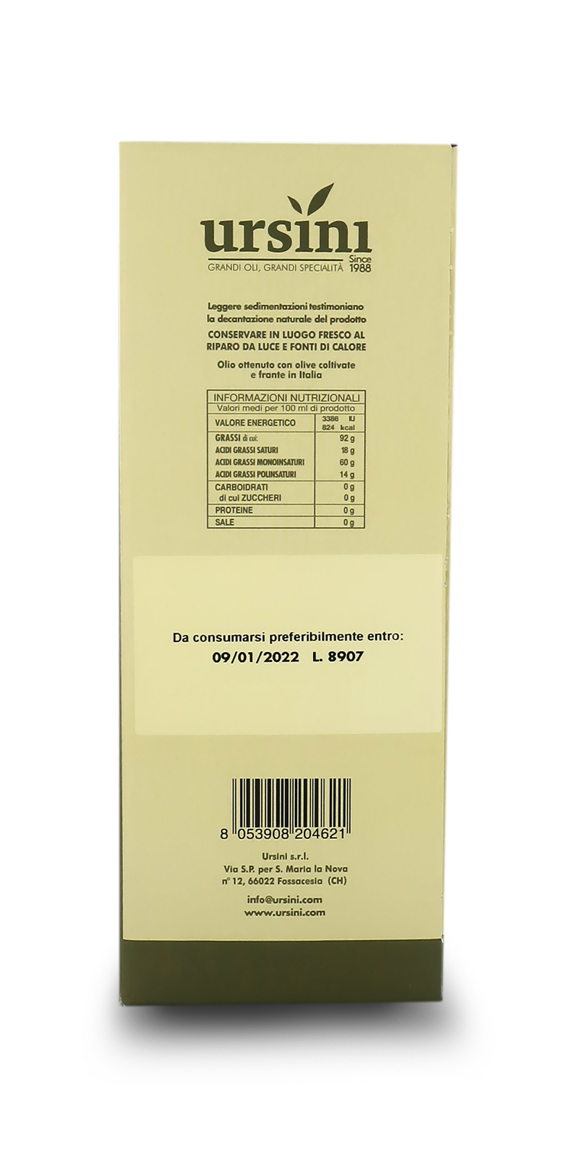 La Famiglia Ursini vanta una lunga tradizione nel mondo dell'olio. Già nel 1800 i suoi componenti erano considerati esperti della cura degli oliveti. Ai giorni nostri, a Fossacesia, la magnifica Costa dei Trabocchi in Abruzzo ospita oliveti controllati, un frantoio di famiglia e una cucina-laboratorio, in cui sapienza ed esperienza si uniscono alla creatività e all'innovazione per concepire oli e prodotti alimentari di grande qualità.