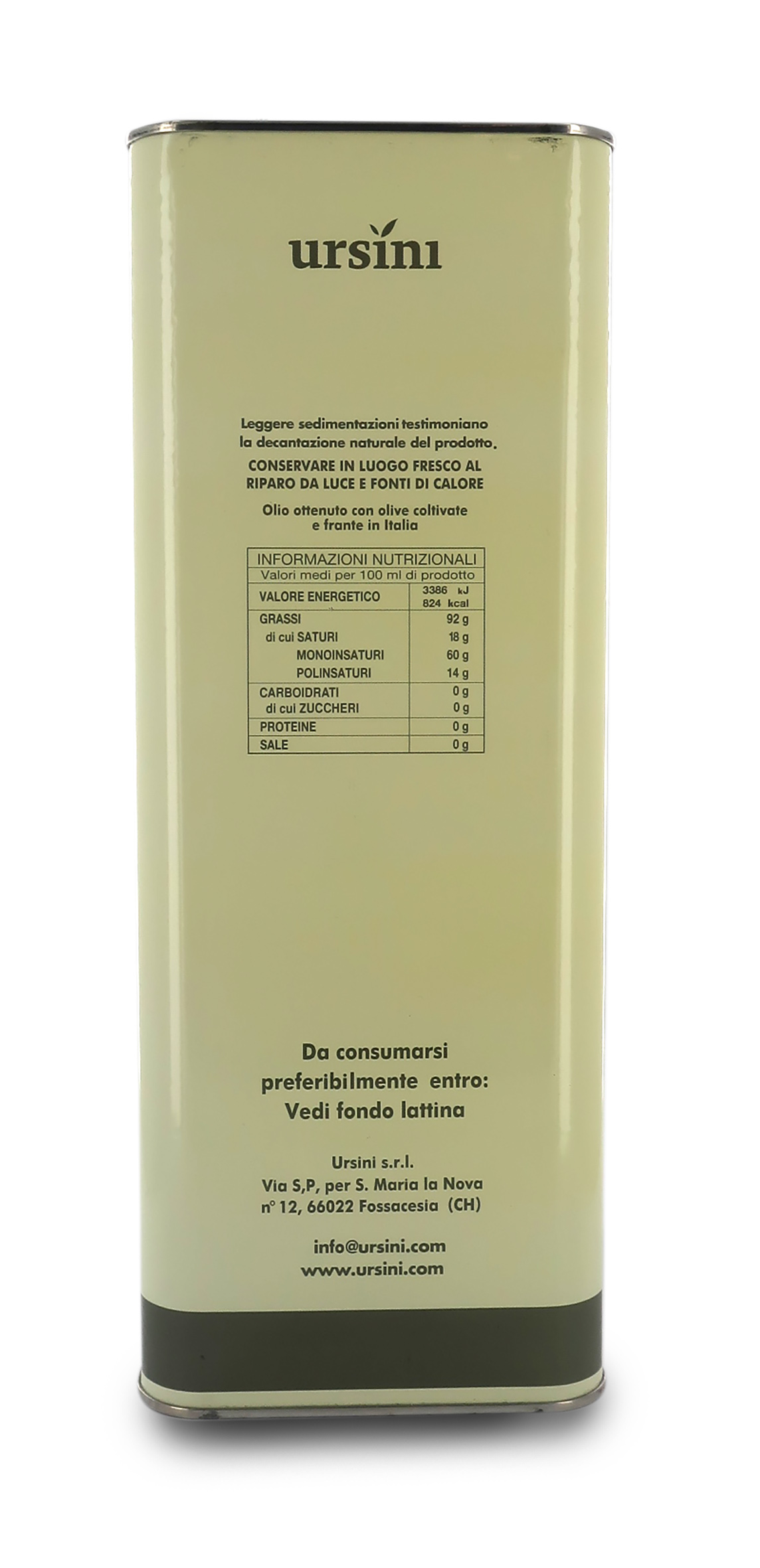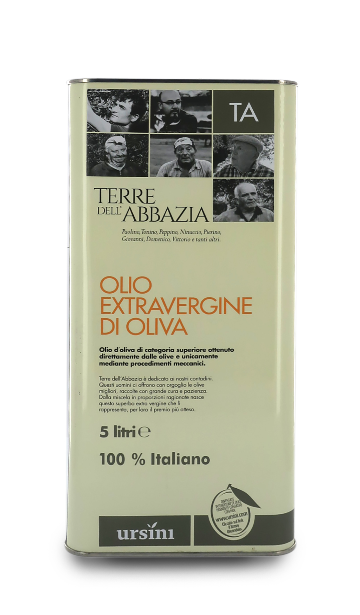 Olio extra vergine d'oliva "Terre dell'Abbazia", 100% italiano, latta da 5 litri