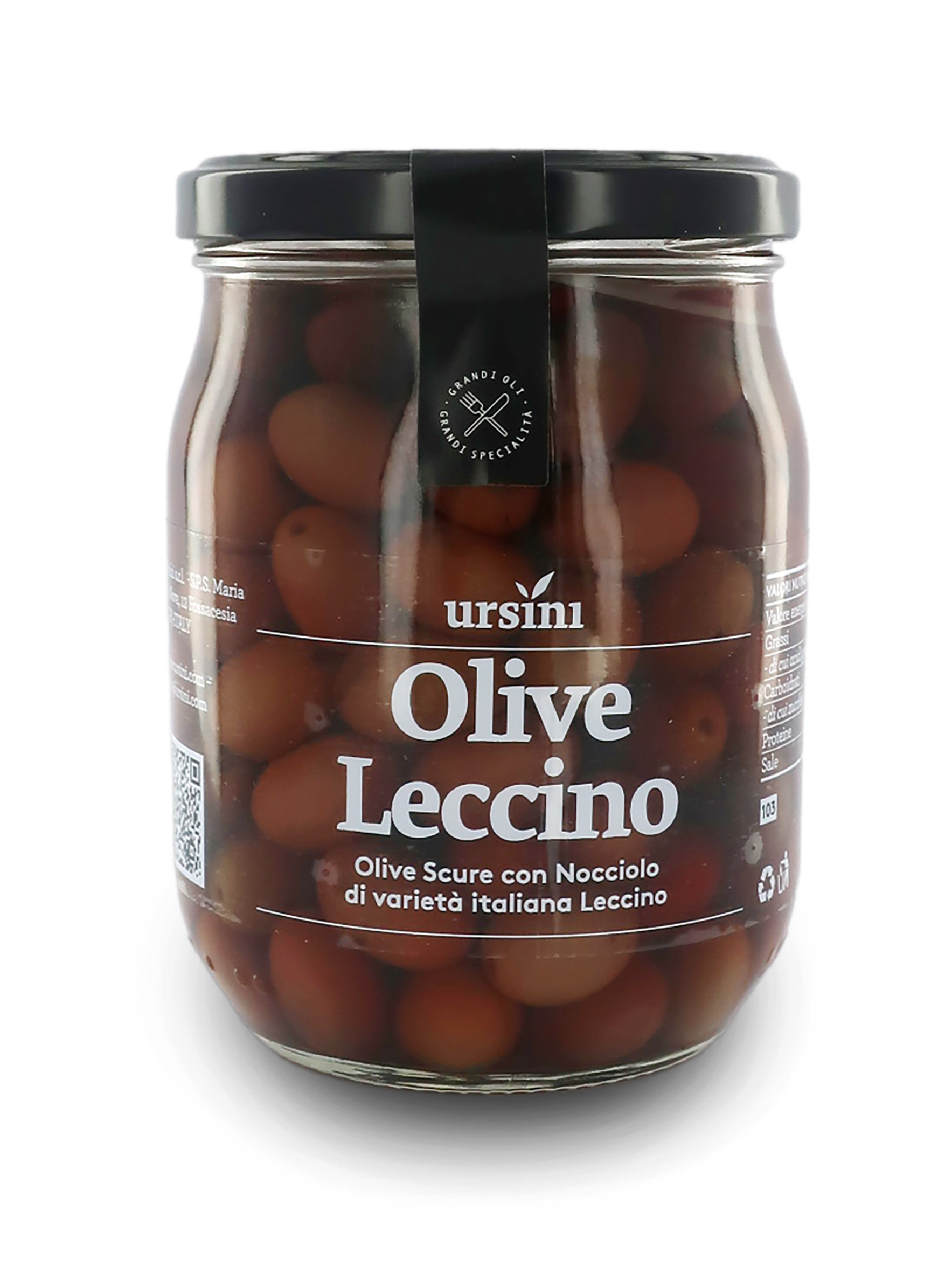Ingredienti: olive Leccino con nocciolo, acqua, sale, acidificanti: acido lattico e acido citrico. Può contenere LUPINI. Prodotto in uno stabilimento che utilizza SEDANO, FRUTTA SECCA IN GUSCIO, PESCE, PANE, SENAPE, PRODOTTI A BASE DI LATTE E DERIVATI DELLE UOVA.