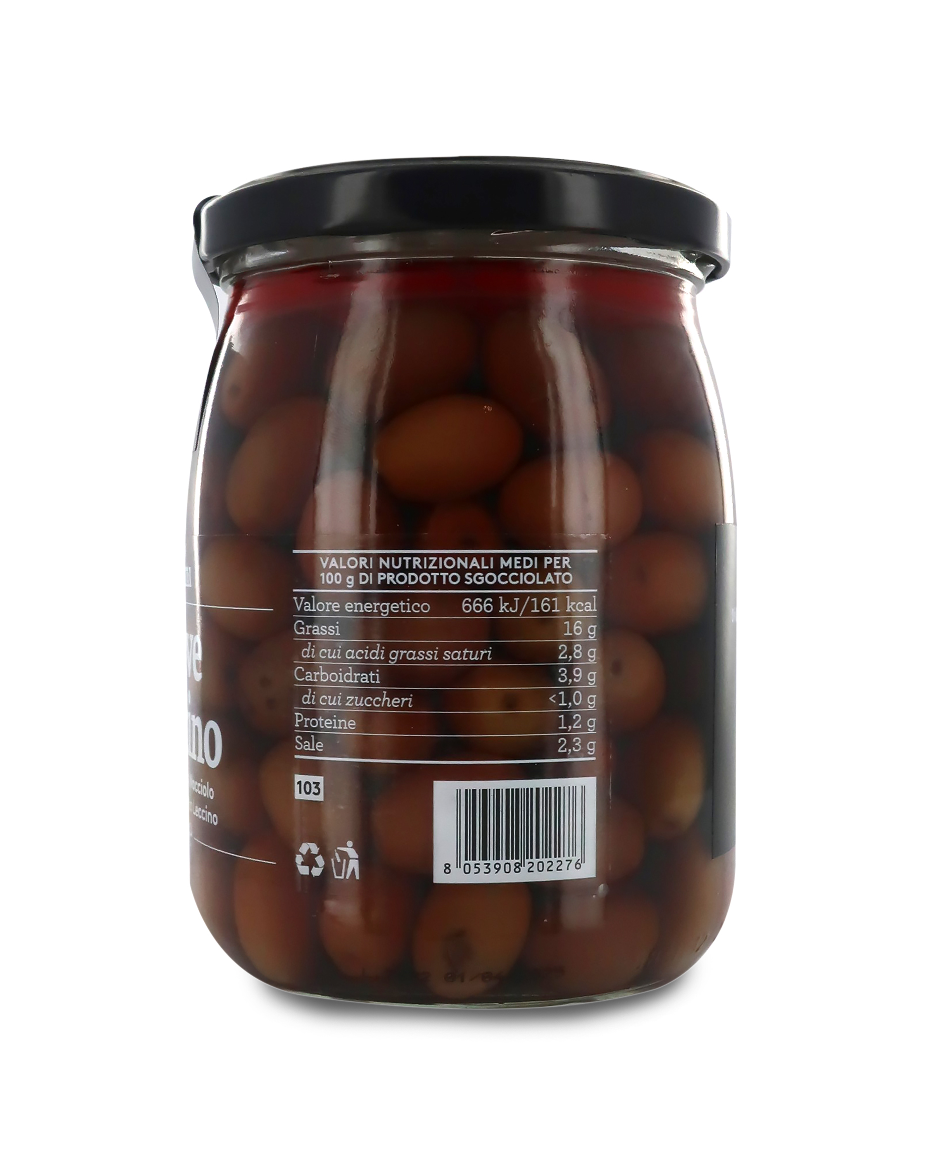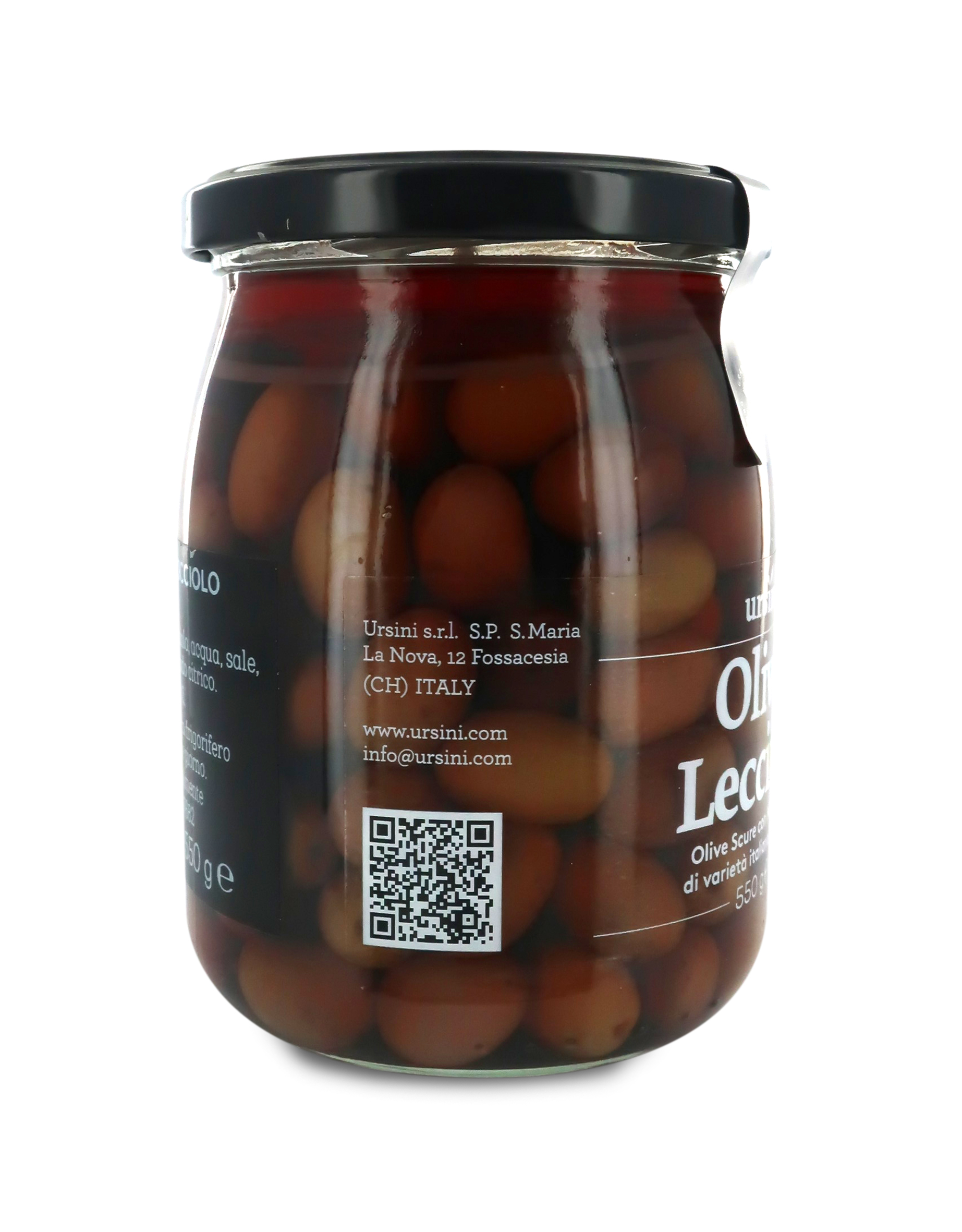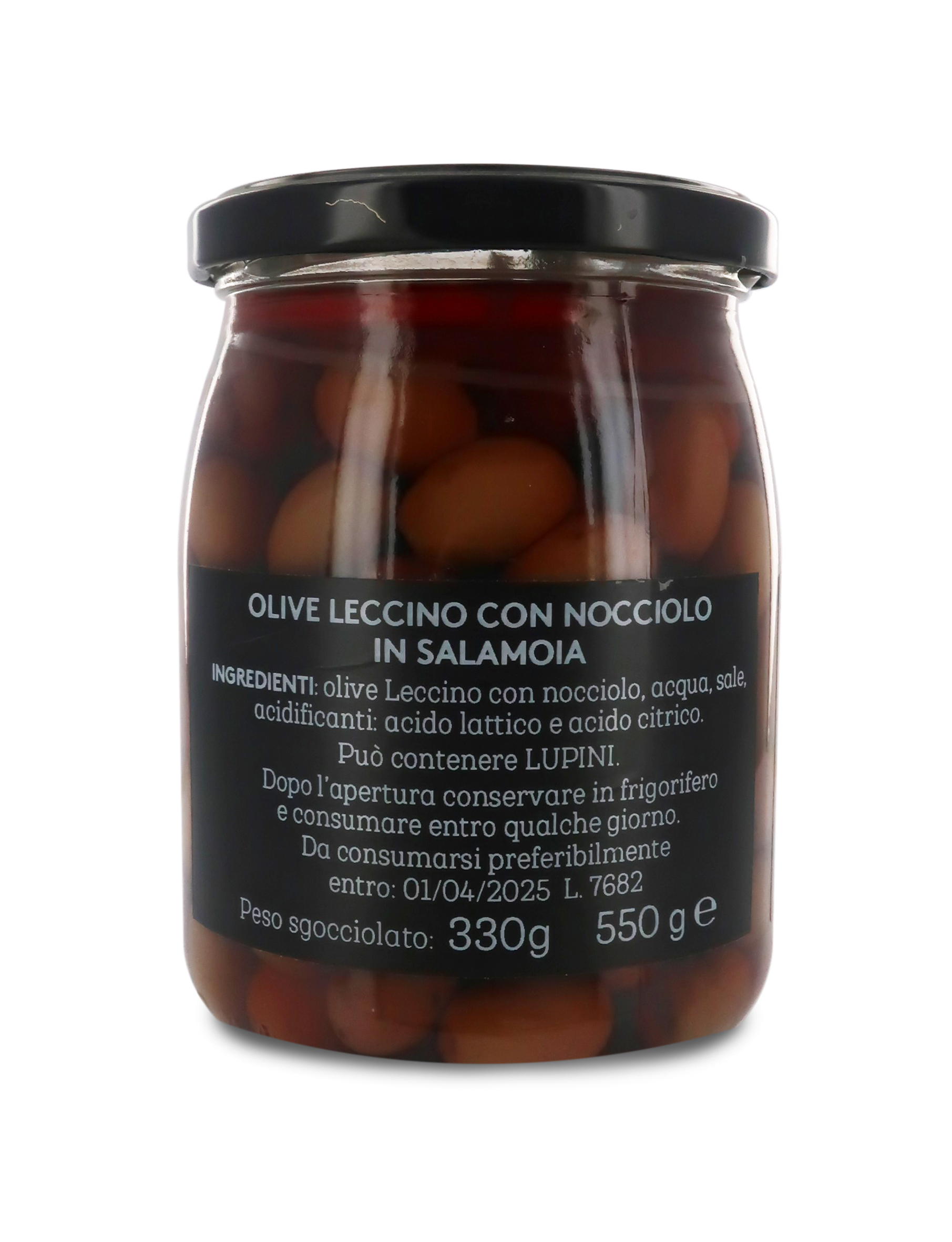 Olive Leccino in Salamoia, Olive Scure Leccino con Nocciolo, 550g, Peso Sgocciolato 330g