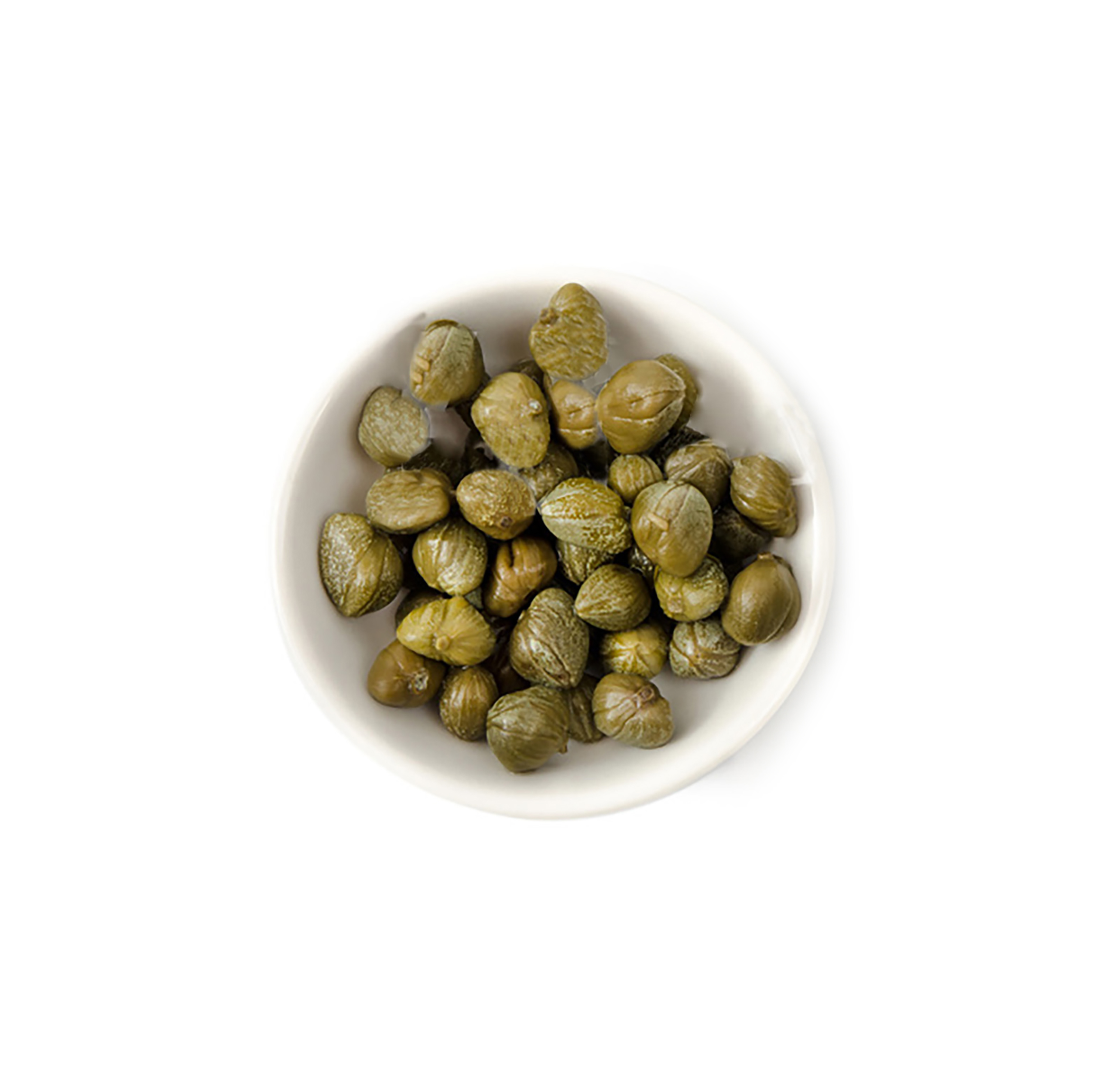 Ingredienti: 55% capperi (sale, aceto di vino)*, 45% olio extravergine d’oliva* [*da agricoltura biologica].