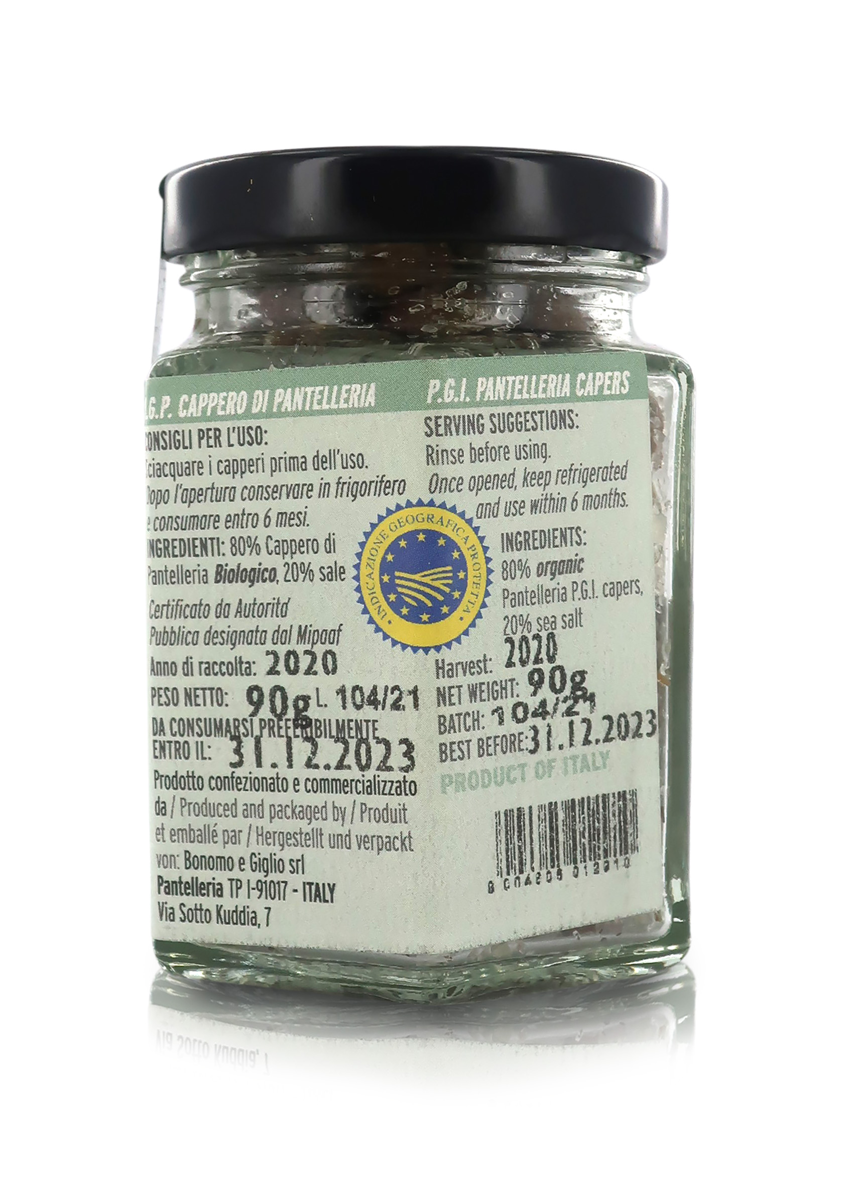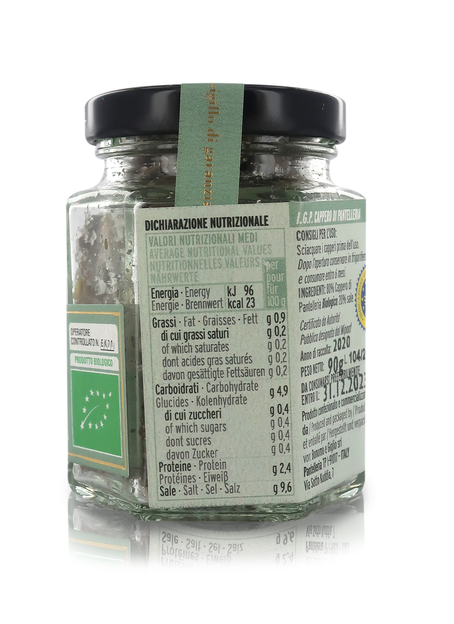 Ingredienti: 80% Cappero di Pantelleria Biologico, 20% sale.