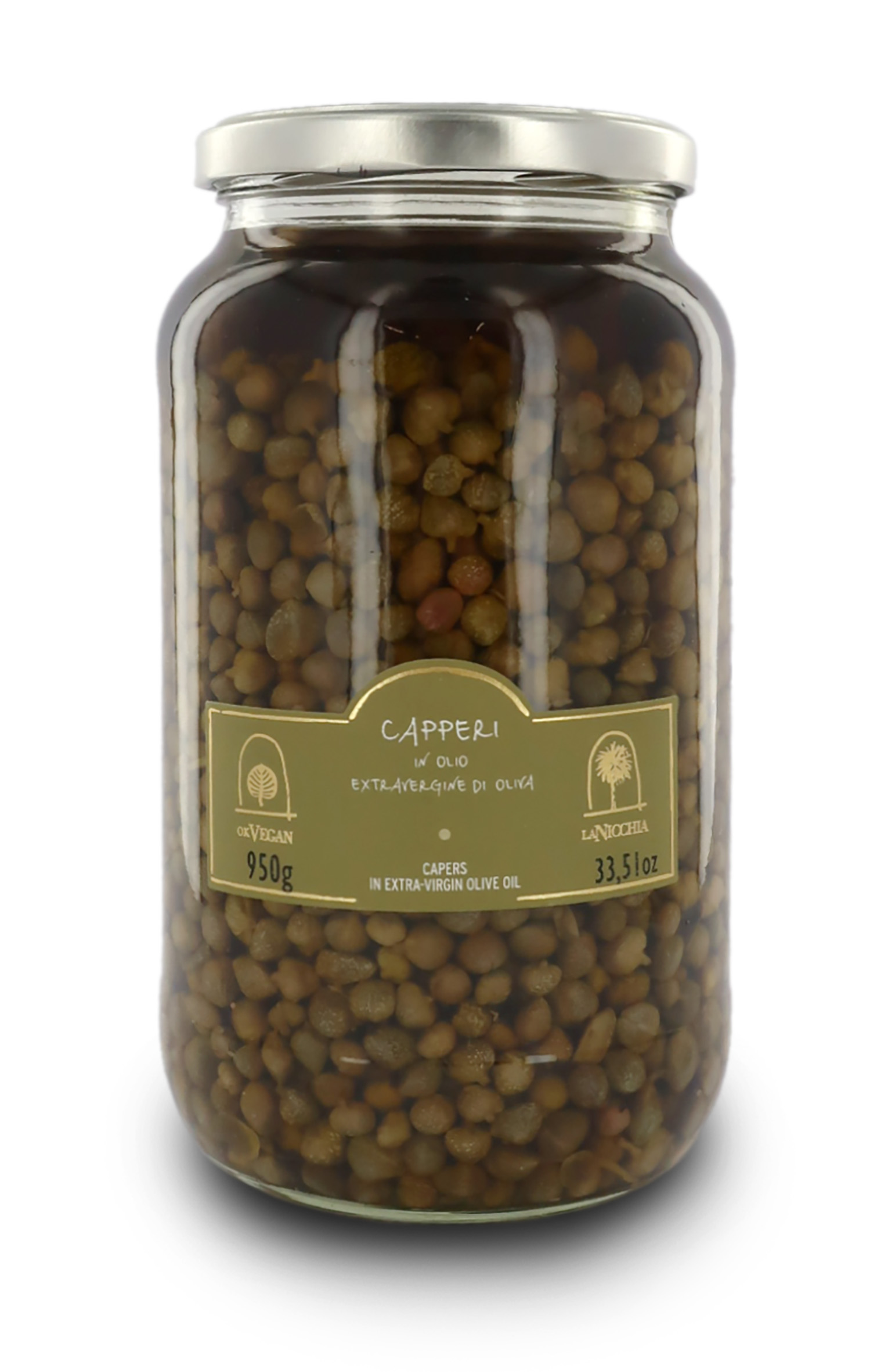 Capperi di Pantelleria, piccolo calibro, già pronti all’uso, conservati in olio extravergine d'oliva. La loro ridotta dimensione consente ai capperi di mantenere una consistenza croccante. Ideali per insalate di riso e per condire pesce arrosto o alla griglia. Ottimi anche durante gli aperitivi, magari su un crostino di pane o cracker.
