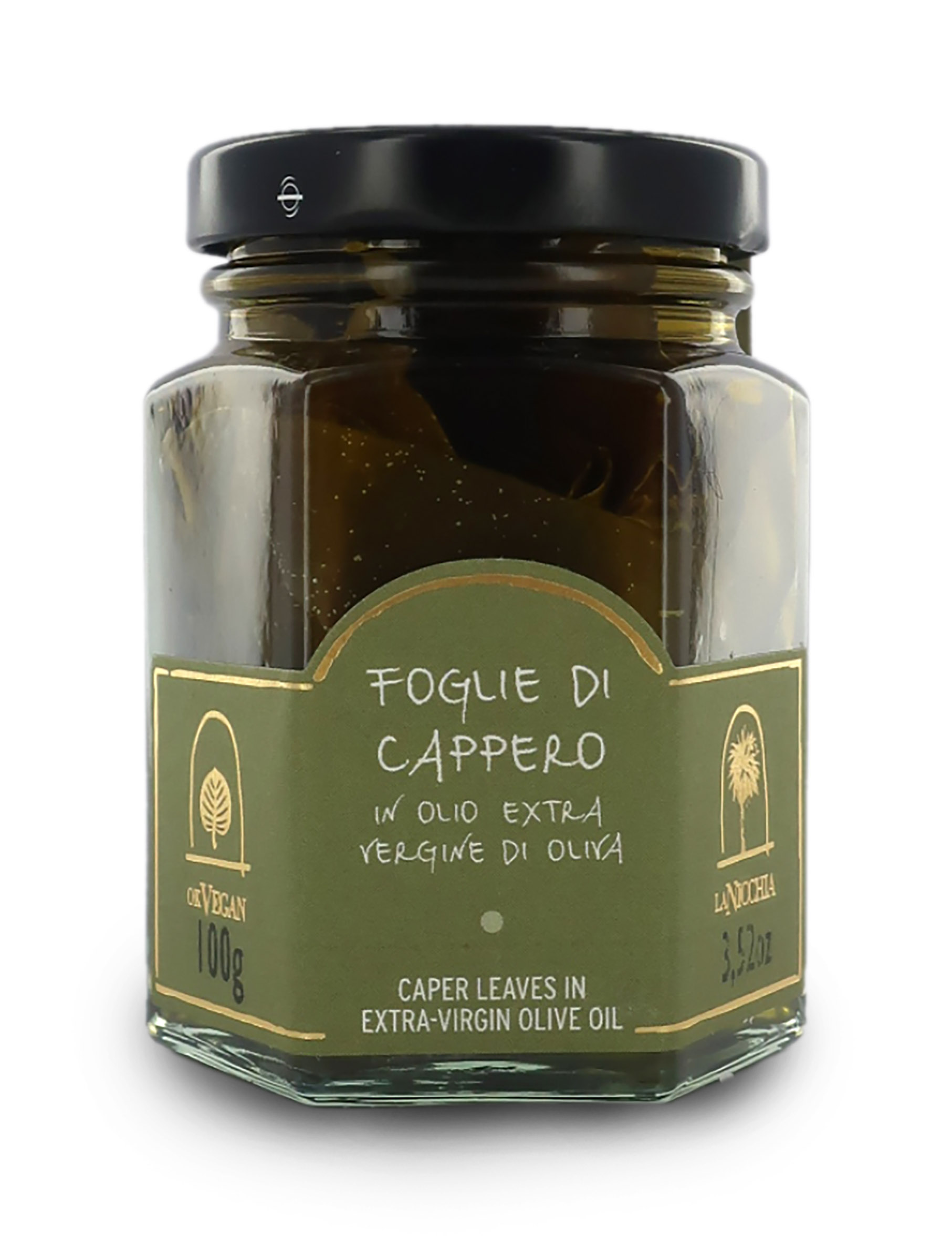 Foglie di cappero sottolio. Come vuole la tradizione pantesca, non è il solo cappero ad avere un posto d'onore sulle tavole dell'isola siciliana di Pantelleria. La Nicchia, capperificio storico con un'esperienza di oltre 70 anni, raccoglie e lavora con sapienza i semplici ingredienti della terra, proponendo queste gustose foglie di cappero, sode e croccanti, conservate in olio extravergine d'oliva. Si distinguono per il giusto bilanciamento tra la piacevole nota acidula e la spiccata sapidità. Essendo tanto belle alla vista quanto buone al palato, risultano ideali per condire e guarnire varie preparazioni a base di pesce, carne, verdure cotte e crude.