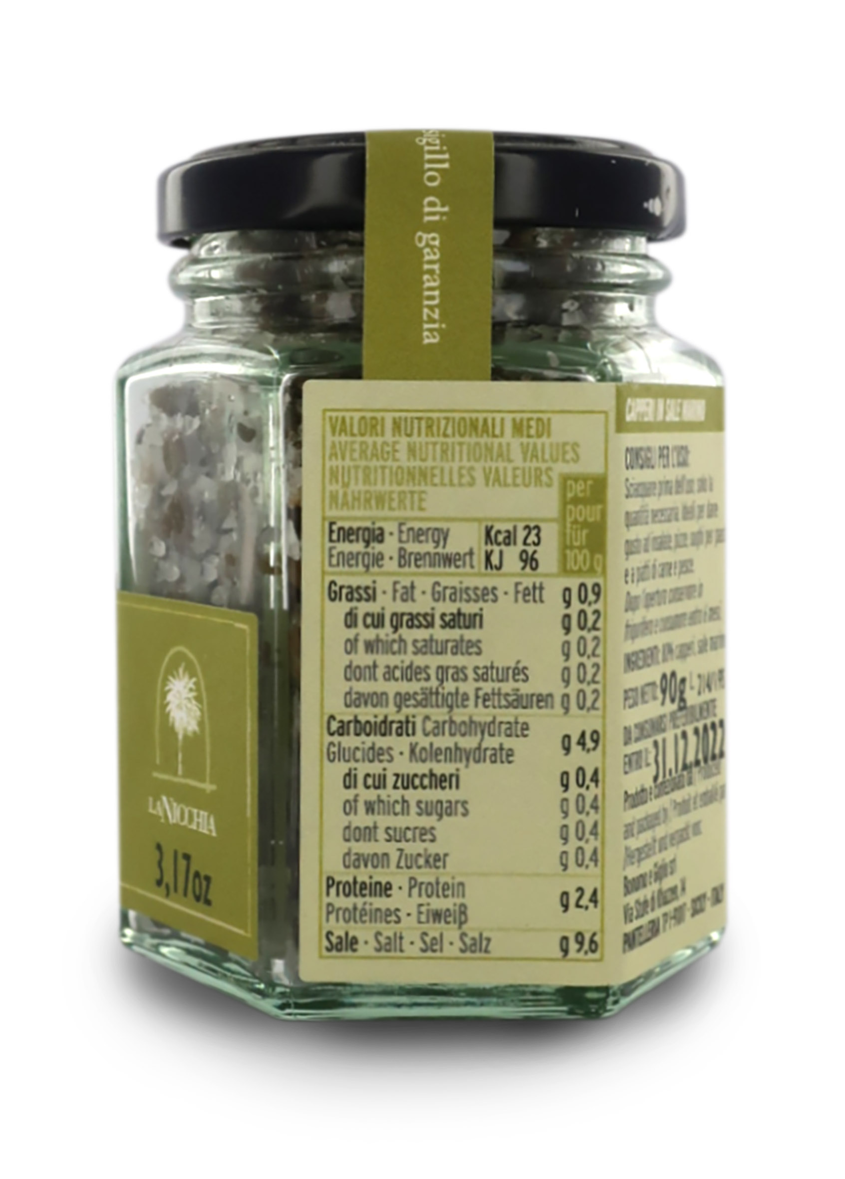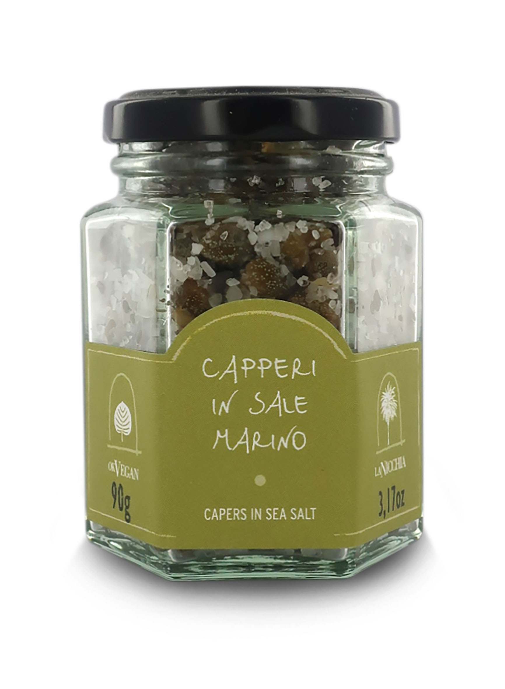 La Nicchia Pantelleria Capperi di Sicilia Sotto Sale, Calibro Piccolo, 4/8 Mm, Capperi Piccoli Ideali per Guarnire Piatti di Carne e Insaporire Insalate - Vasetto 90g