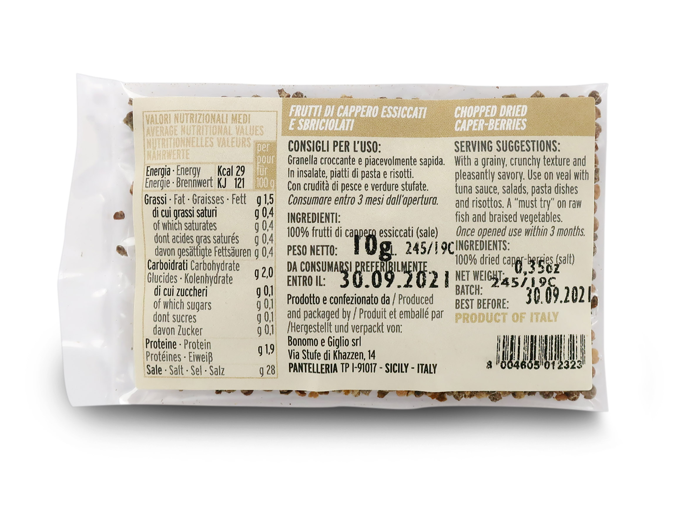 La Nicchia Pantelleria Granella di Cucunci, Frutti della Pianta del Cappero Essiccati e Sbriciolati - Bustina 10g