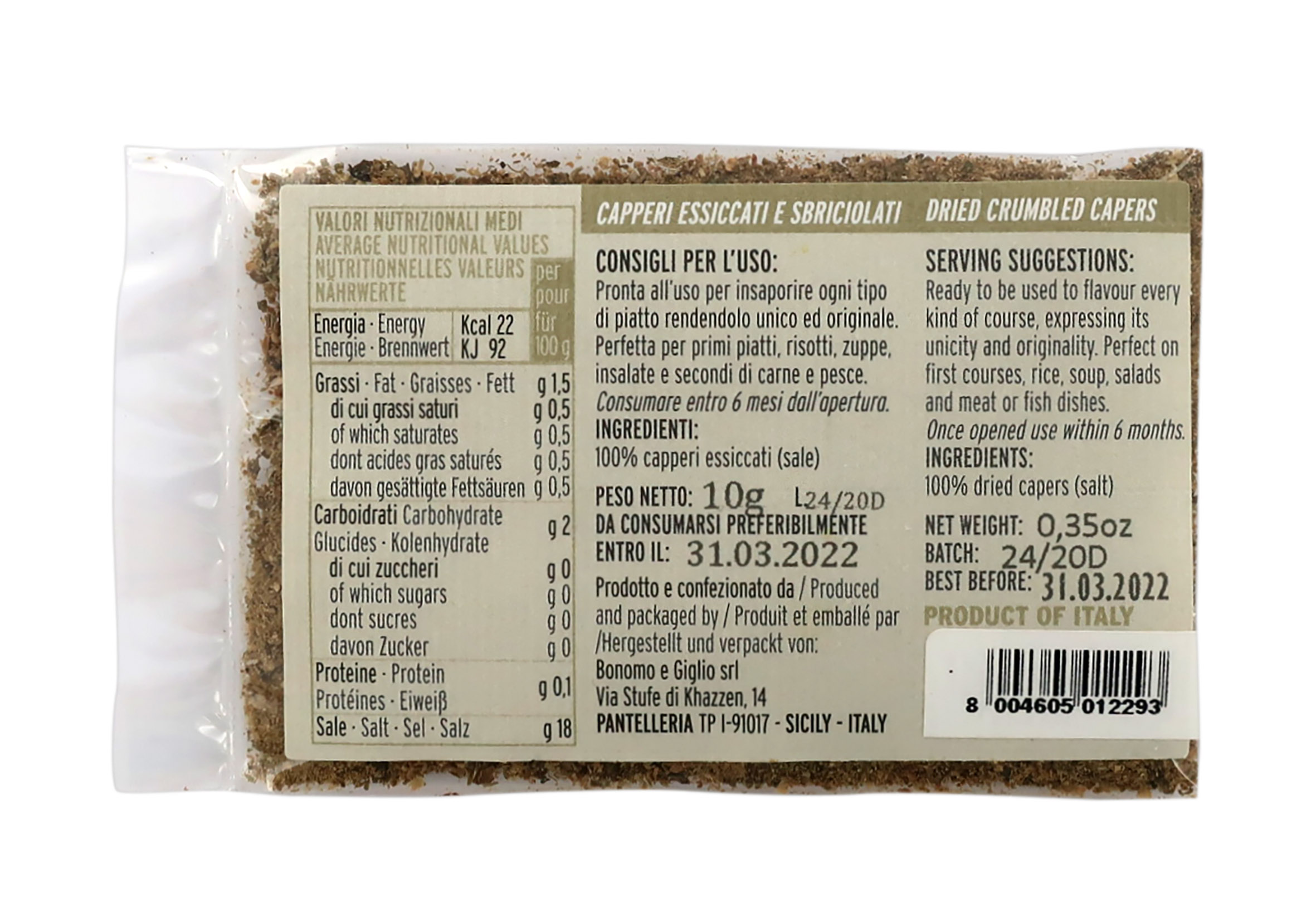 Ingredienti: 100% capperi essiccati (sale).