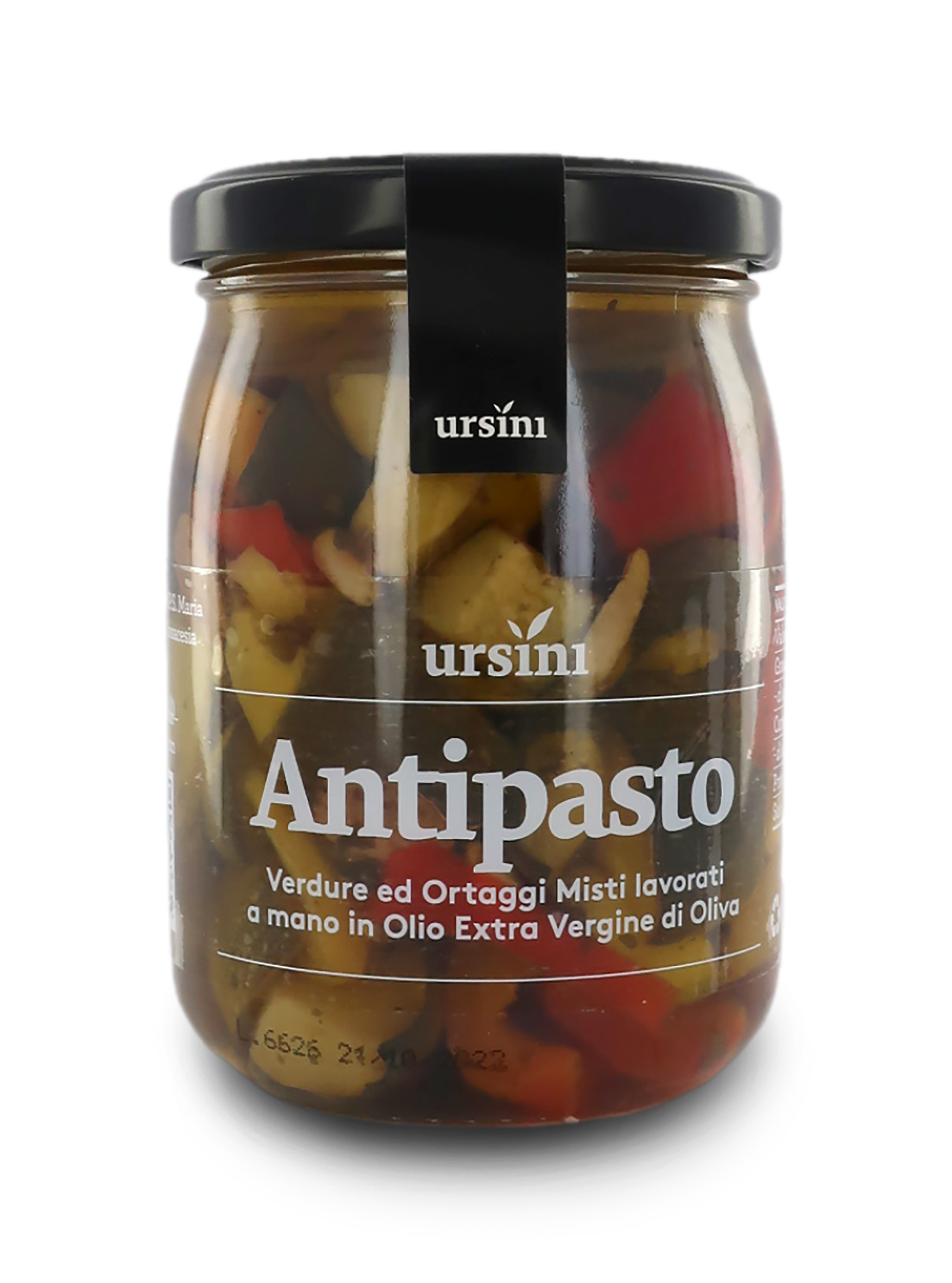Ingredienti: ortaggi misti in proporzione variabile (zucchine, peperoni gialli e rossi) 78%, olio extravergine di oliva 13%, sale, zucchero, vino bianco (contiene solfiti), aceto di vino bianco (contiene solfiti), uvetta sultanina (uva secca, olio vegetale di cotone), pinoli, prezzemolo.
