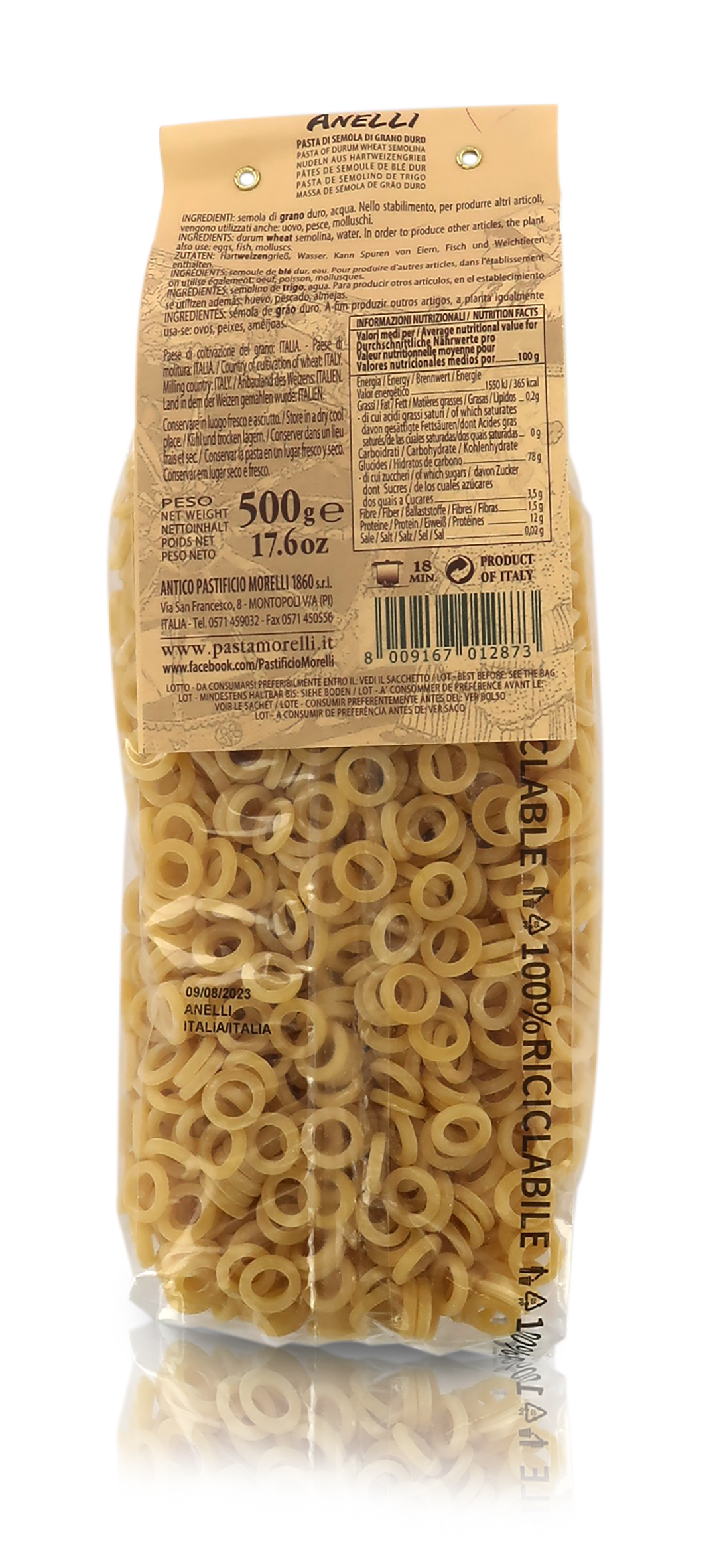Anelli, pasta tipica regionale, 6 confezioni da 500 grammi.