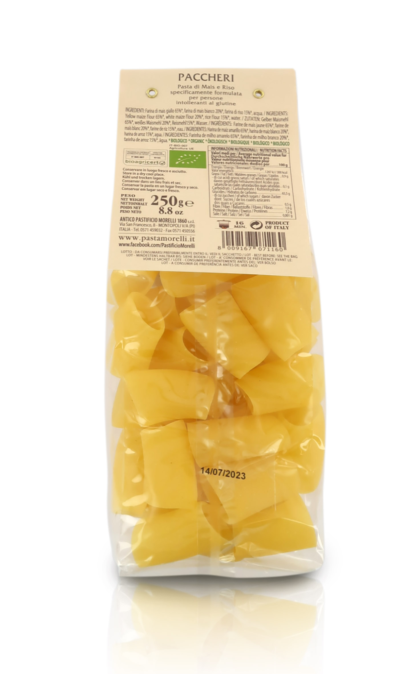 Paccheri Al Mais E Riso Bio, Senza Glutine, 8 Confezioni Da 250 Grammi
