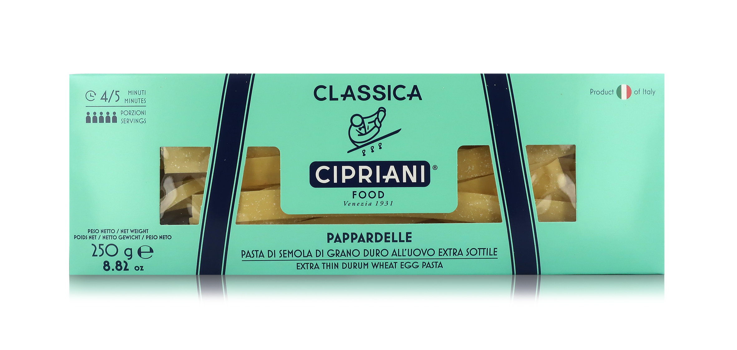 Cipriani Pappardelle, Pasta Italiana di Semola di Grano Duro all'Uovo Extra Sottile, Pappardelle Classiche con Uova Fresche, Lenta Essiccazione, 250 Grammi
