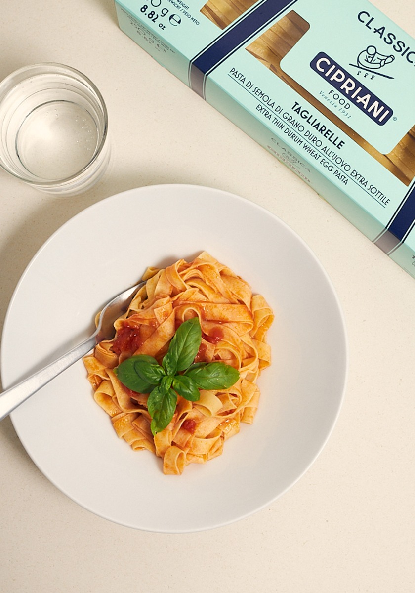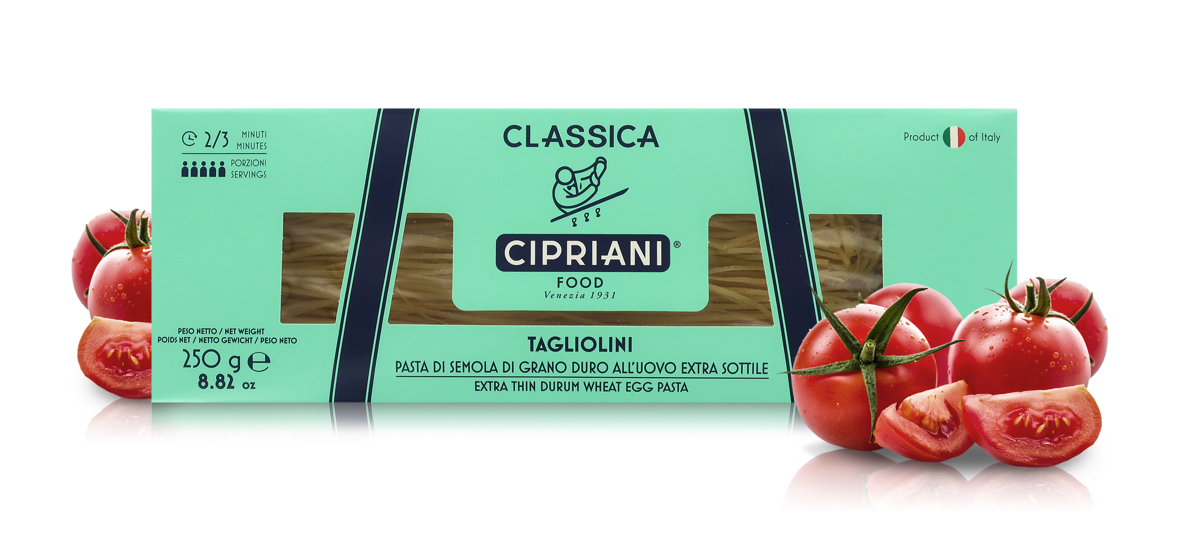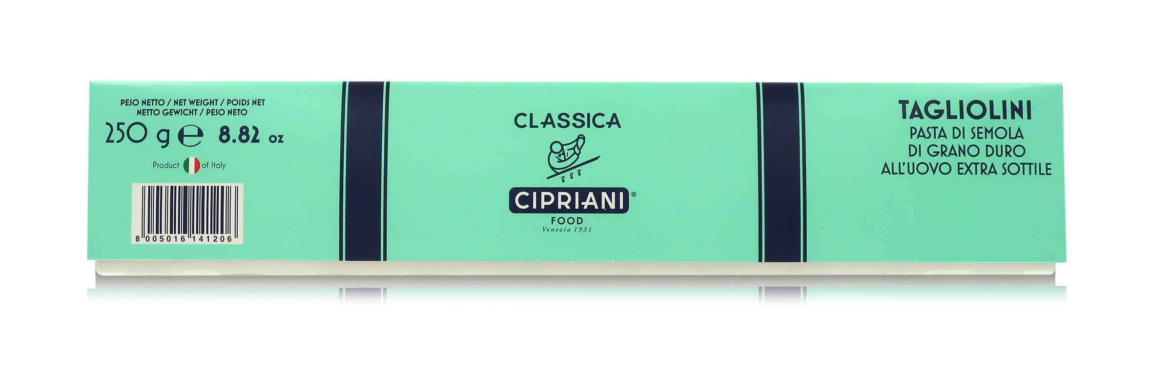 Tagliolini Cipriani: un formato che non teme confronti per delicatezza e resistenza alla cottura. Angelo Cipriani, per molti anni cameriere all’Harry’s Bar e uno dei favoriti da Truman Capote, aveva delle idee molto chiare sui cibi e gli piaceva dire sempre ai clienti che cosa dovevano mangiare. Siccome di solito era a dieta, raccomandava soprattutto tagliolini con olio e prezzemolo. Ed era questo quello che tutti ordinavano!