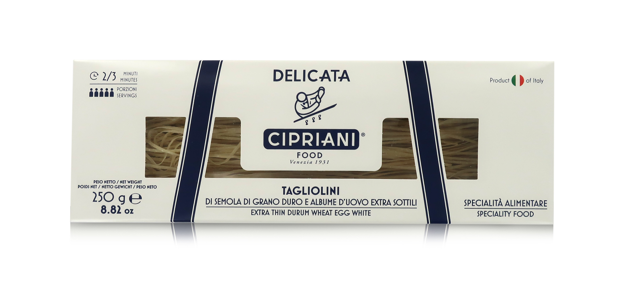 Cipriani Tagliolini Versione Delicata, Pasta Italiana Formato Tagliolini con Semola di Grano Duro e Solo Albume d'Uovo, Tagliolini Extra Sottili, 250 Grammi