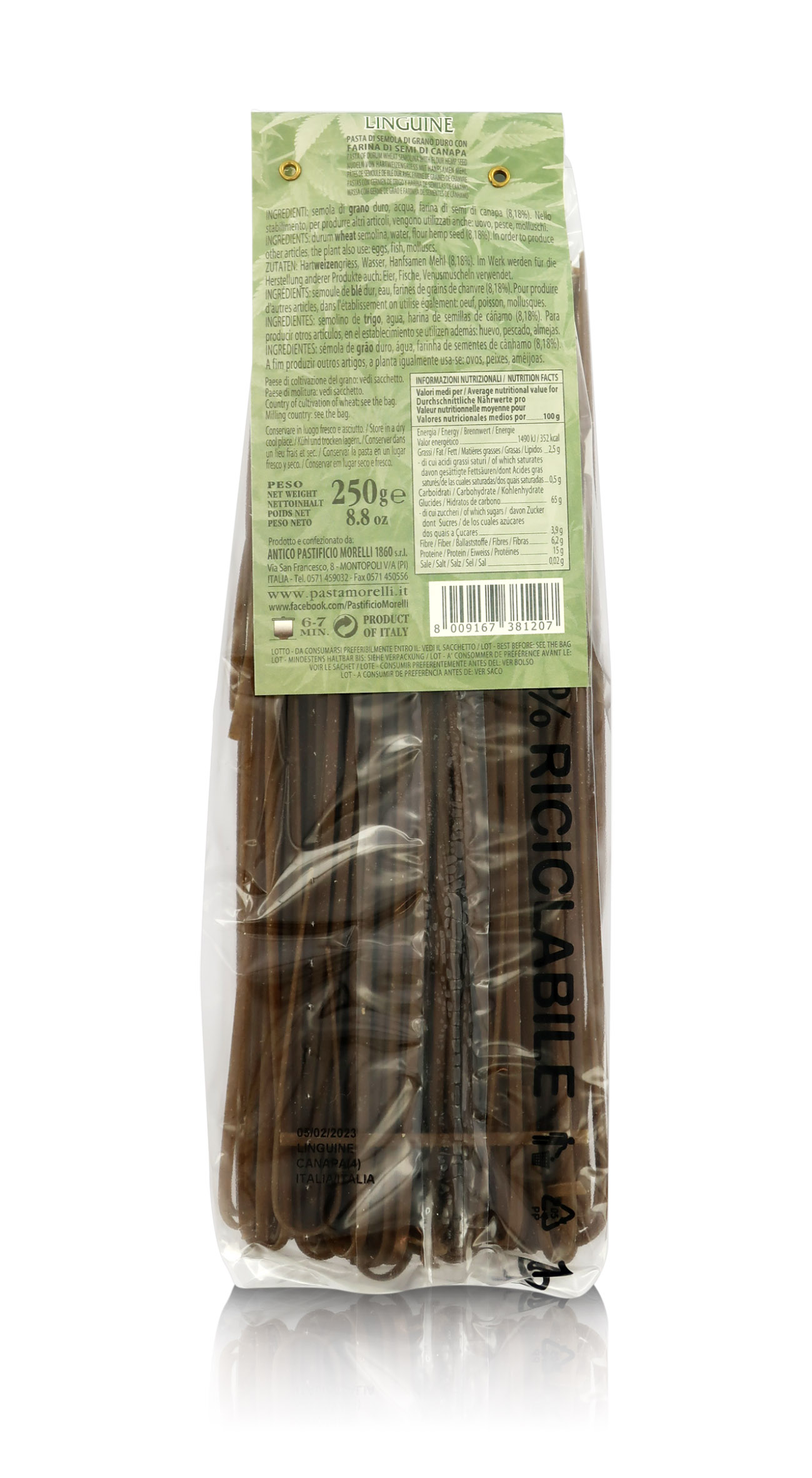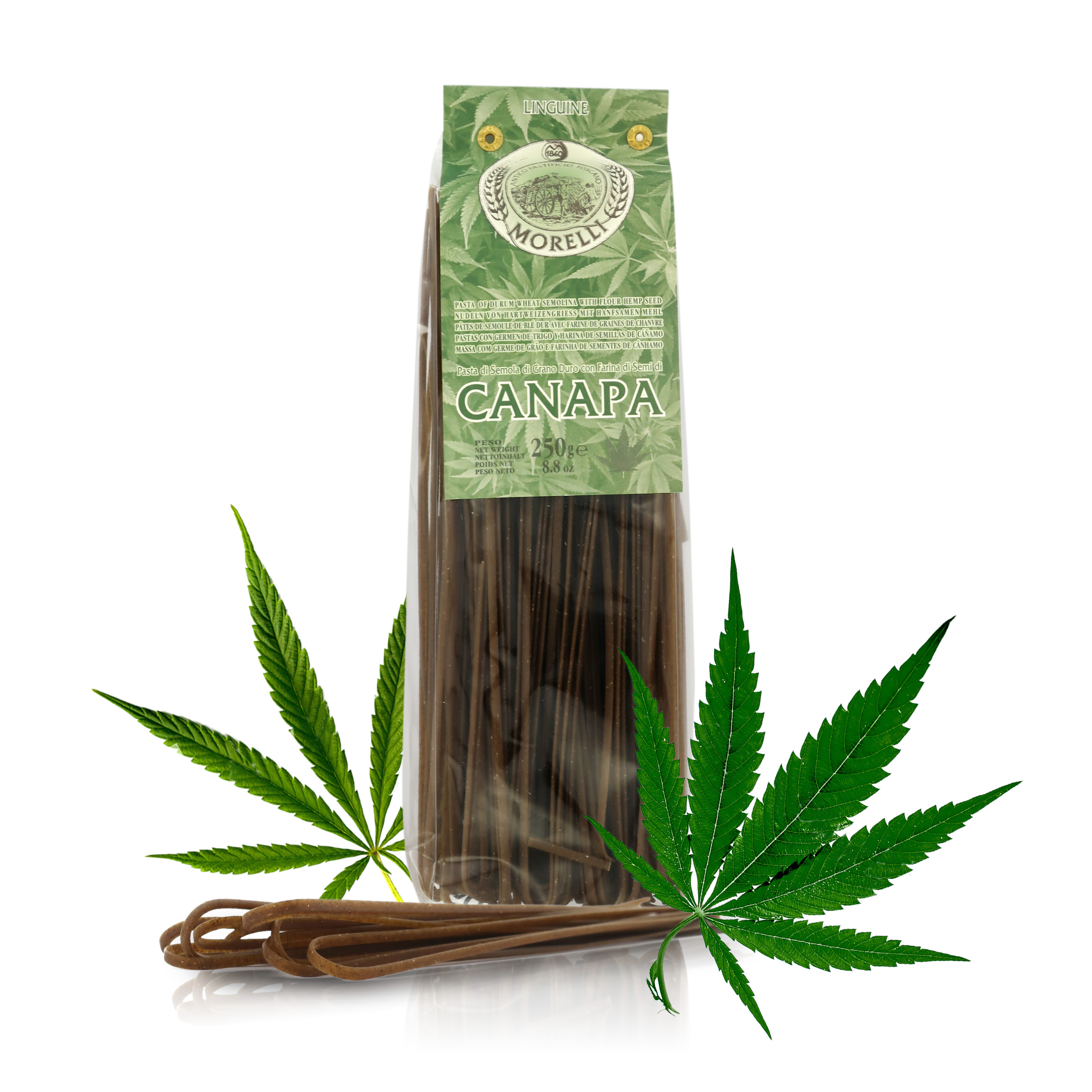 Linguine alla canapa, pasta aromatizzata, 8 confezioni da 250 grammi.
