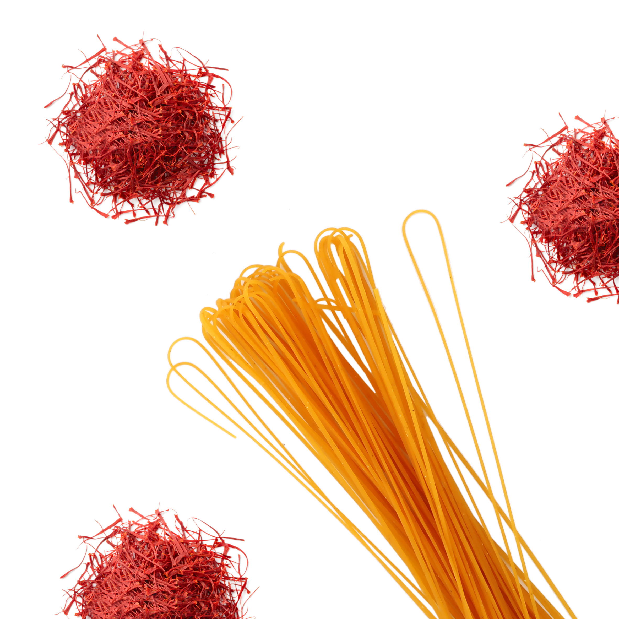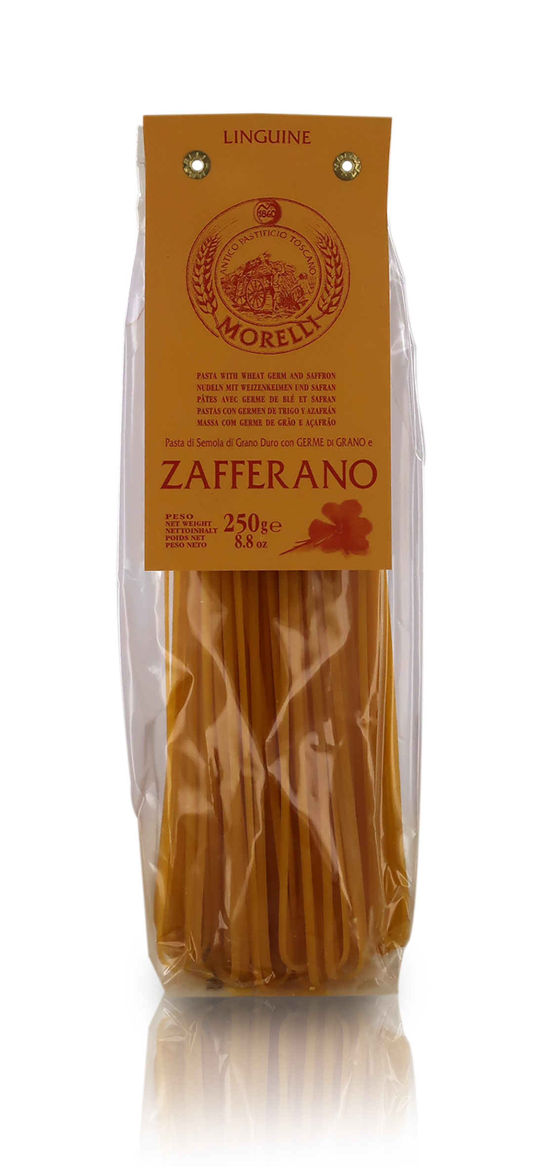 Linguine allo zafferano, pasta aromatizzata, 8 confezioni da 250 grammi.