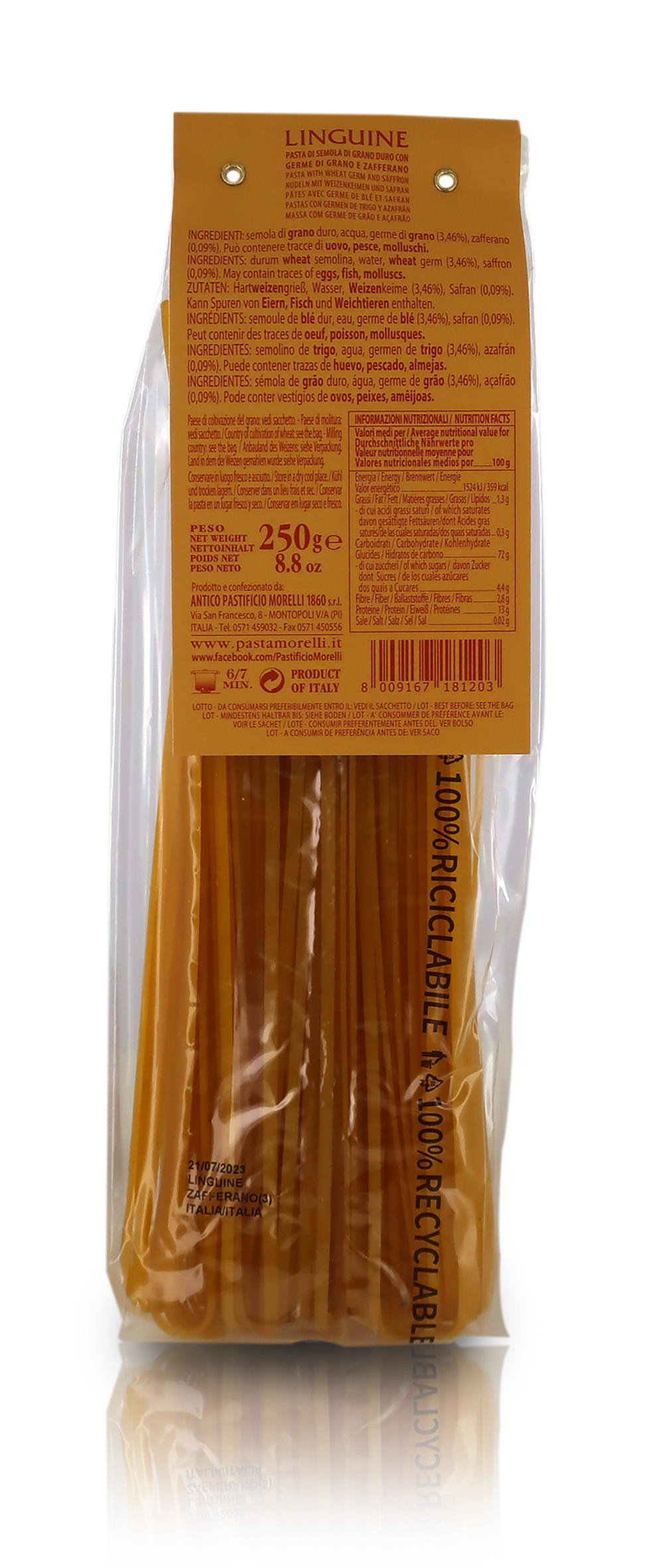 Ingredienti: Semola di grano duro, Acqua, Germe di grano, Zafferano.