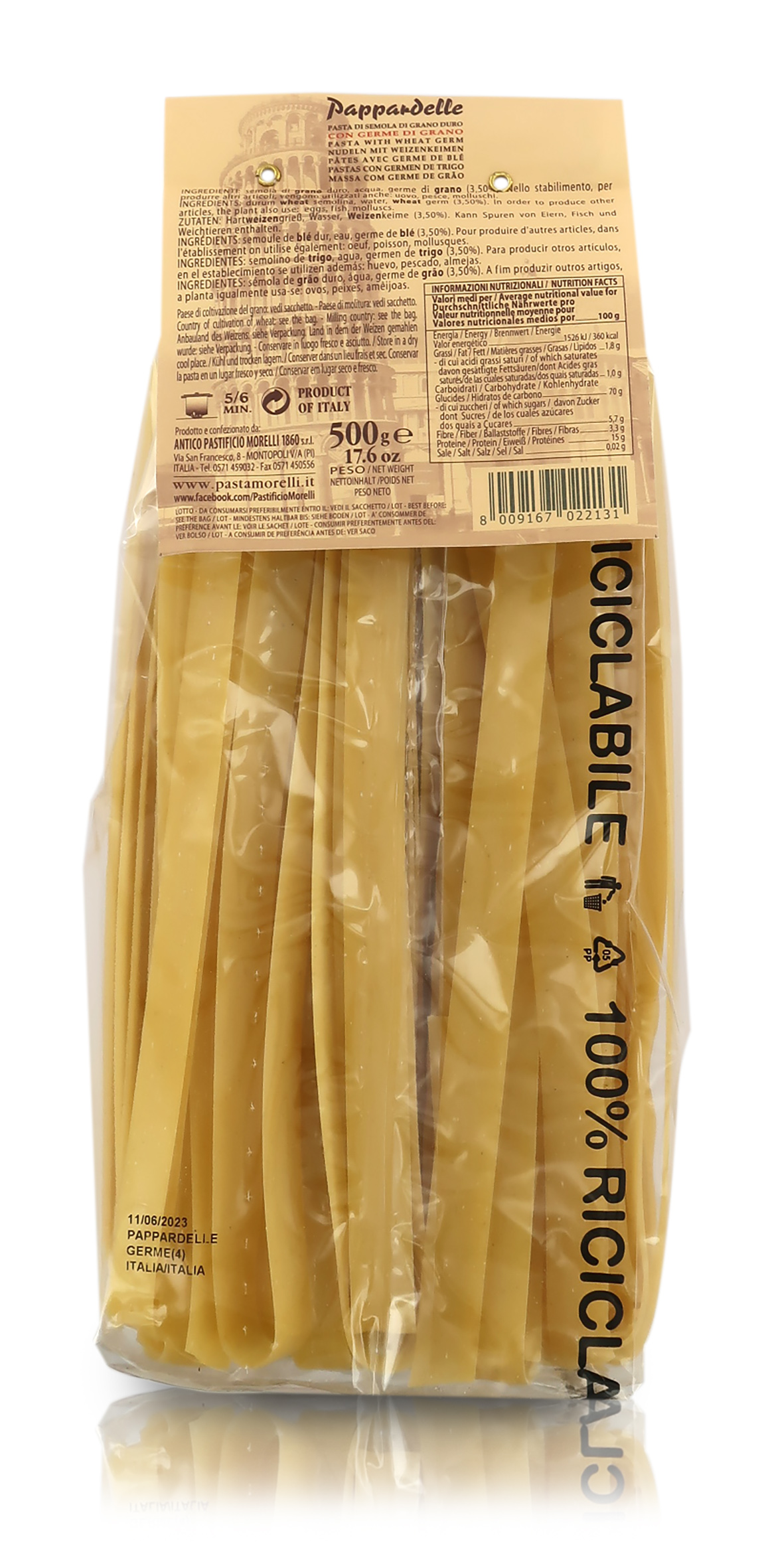 Pappardelle, pasta tipica regionale con germe di grano, 6 confezioni da 500 grammi