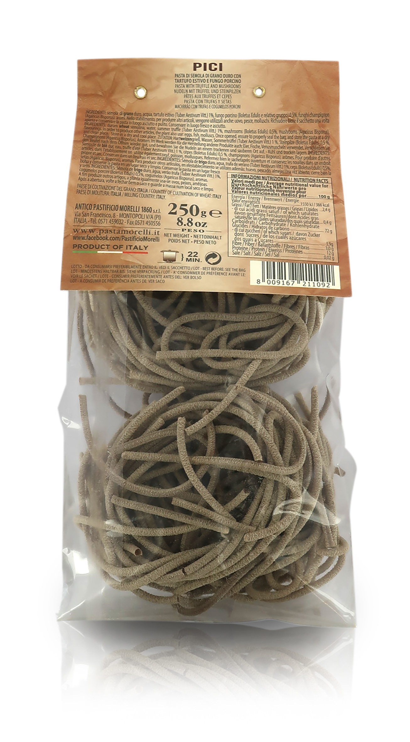 Pici al tartufo e funghi porcini, pasta aromatizzata, 8 confezioni da 250 grammi