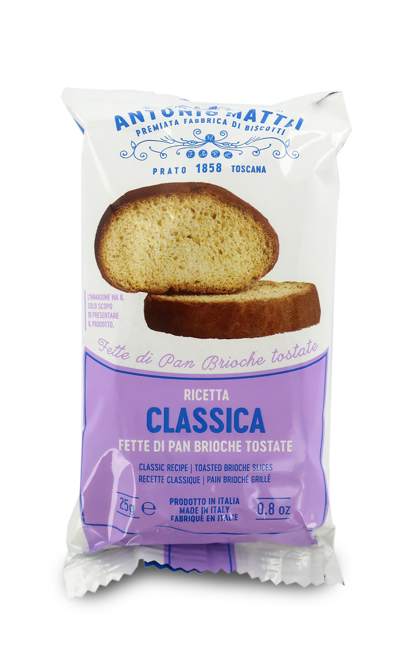 Un classico del Biscottificio Mattei, questi Biscotti della Salute sono ottimi per una colazione gustosa e tradizionale. Sono fette di pane brioche, piacevolmente spesse (circa 1,5 cm) e sapientemente tostate, perfette da usare al posto delle solite fette biscottate di produzione industriale. Il segreto dei Biscotti della Salute Mattei consiste nella doppia e lenta lievitazione della pasta brioche. Il Pane briosciato, ancora soffice, viene lasciato riposare e poi tagliato, per essere successivamente tostato e ottenere così un bel colore dorato e la tipica consistenza friabile e leggera. Sono preparati ancora secondo la ricetta originale. Privi di conservanti, sciroppo di glucosio e coloranti.