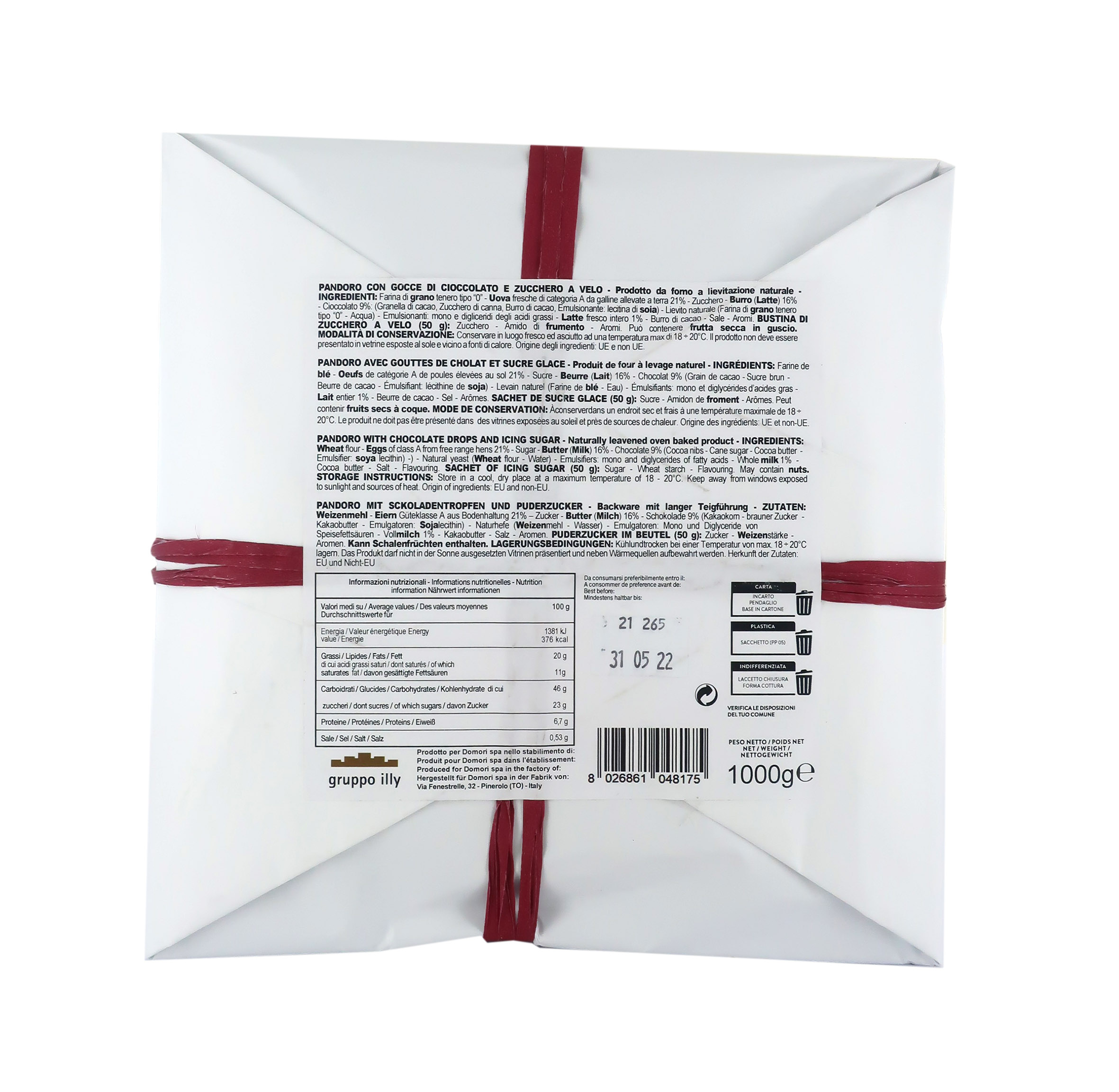 Pandoro con gocce di cioccolato fondente extra, 1 kg.
