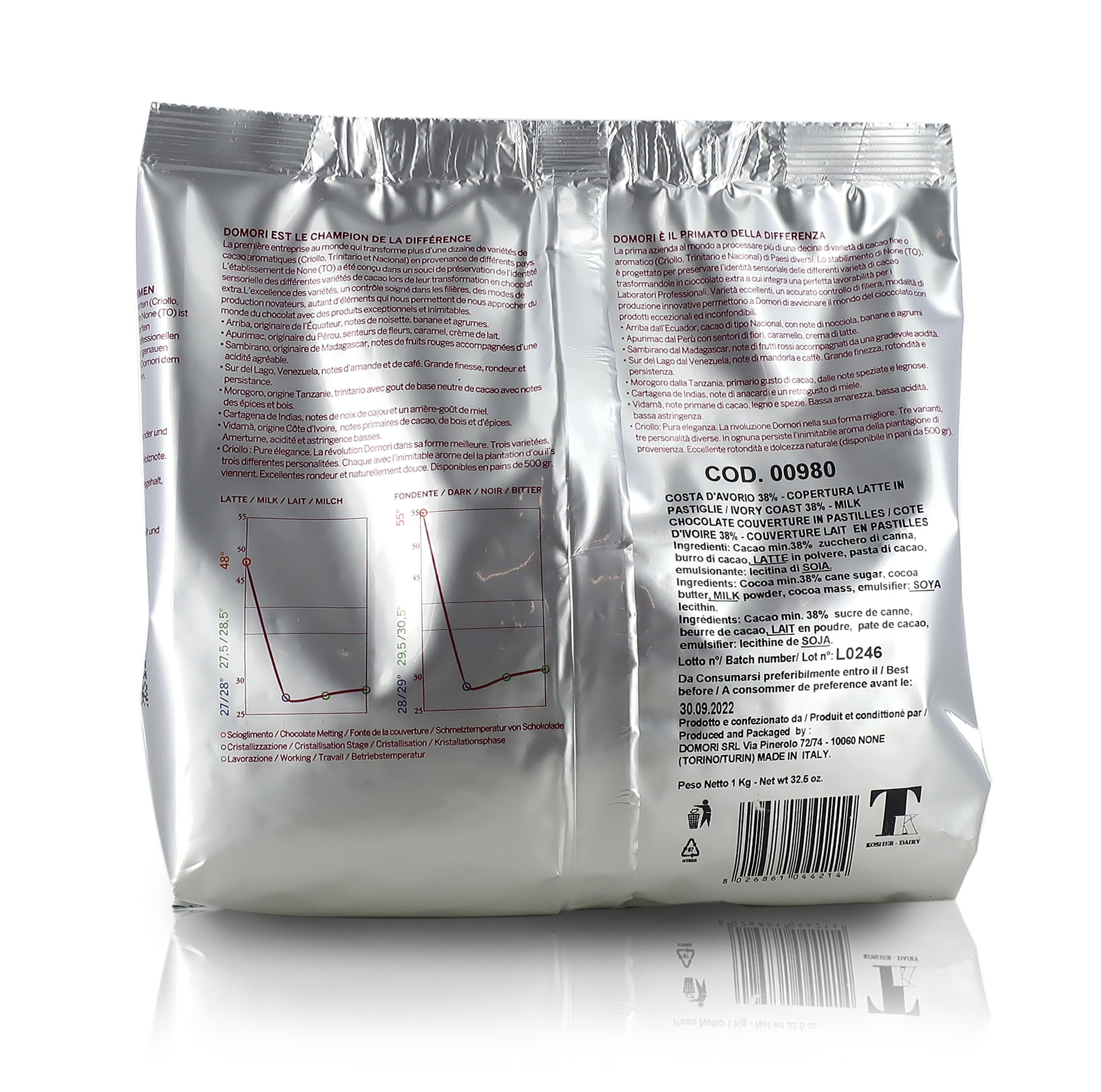 Pensato appositamente per il canale della ristorazione, questo comodo sacco da 1 kg di coperture di cioccolato al LATTE 38 % in pastiglie permette una facile e veloce creazione di molti dolci, che essi siano per colazione, pranzo o cena.