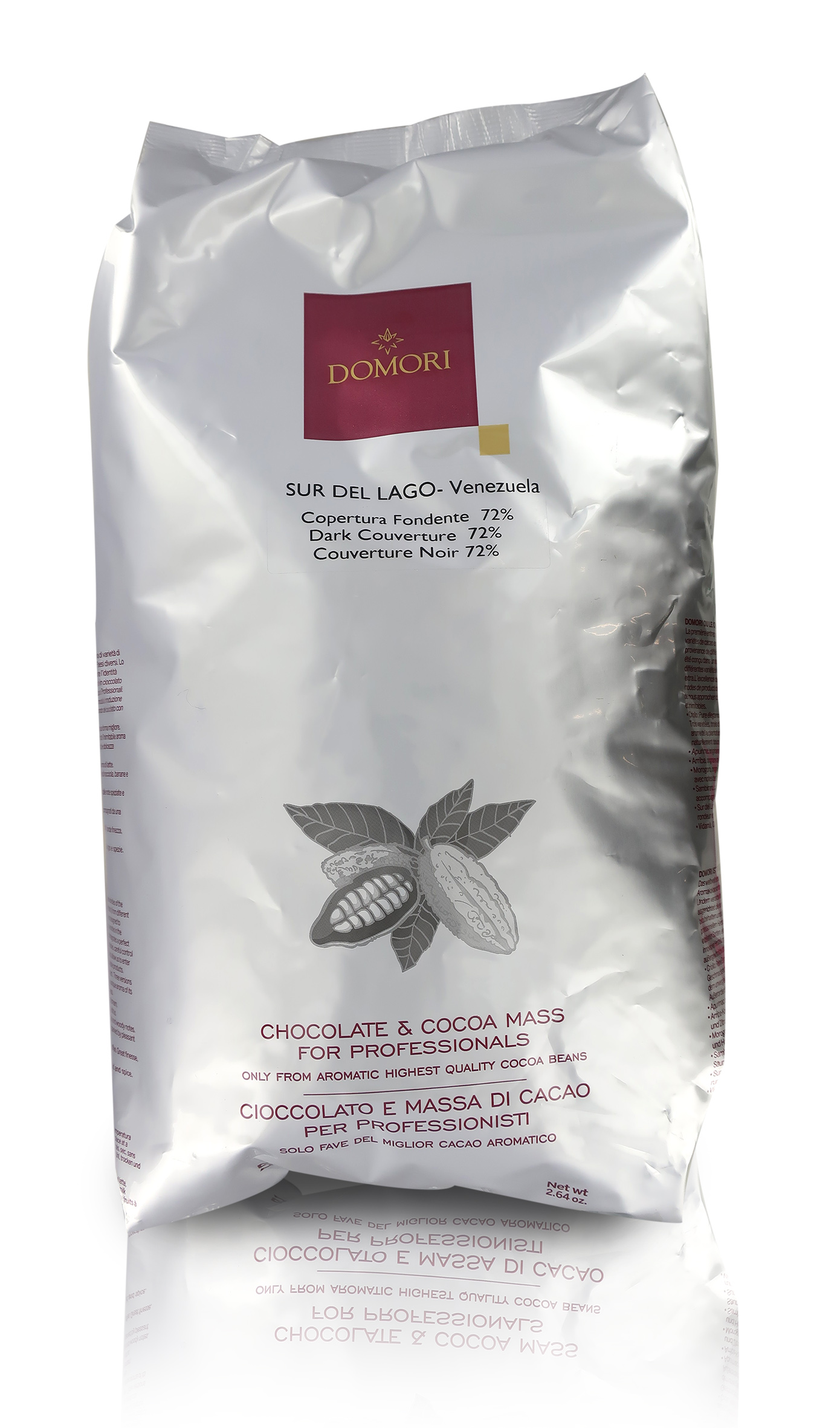 Pensato appositamente per il canale della ristorazione e le pasticcerie, questo maxi sacco Domori da 5 kg di coperture di cioccolato fondente al 72 % del cacao proveniente dalla regione del lago Maracaibo in pastiglie permette una facile e veloce creazione di molti dolci, che essi siano per colazione, pranzo o cena.