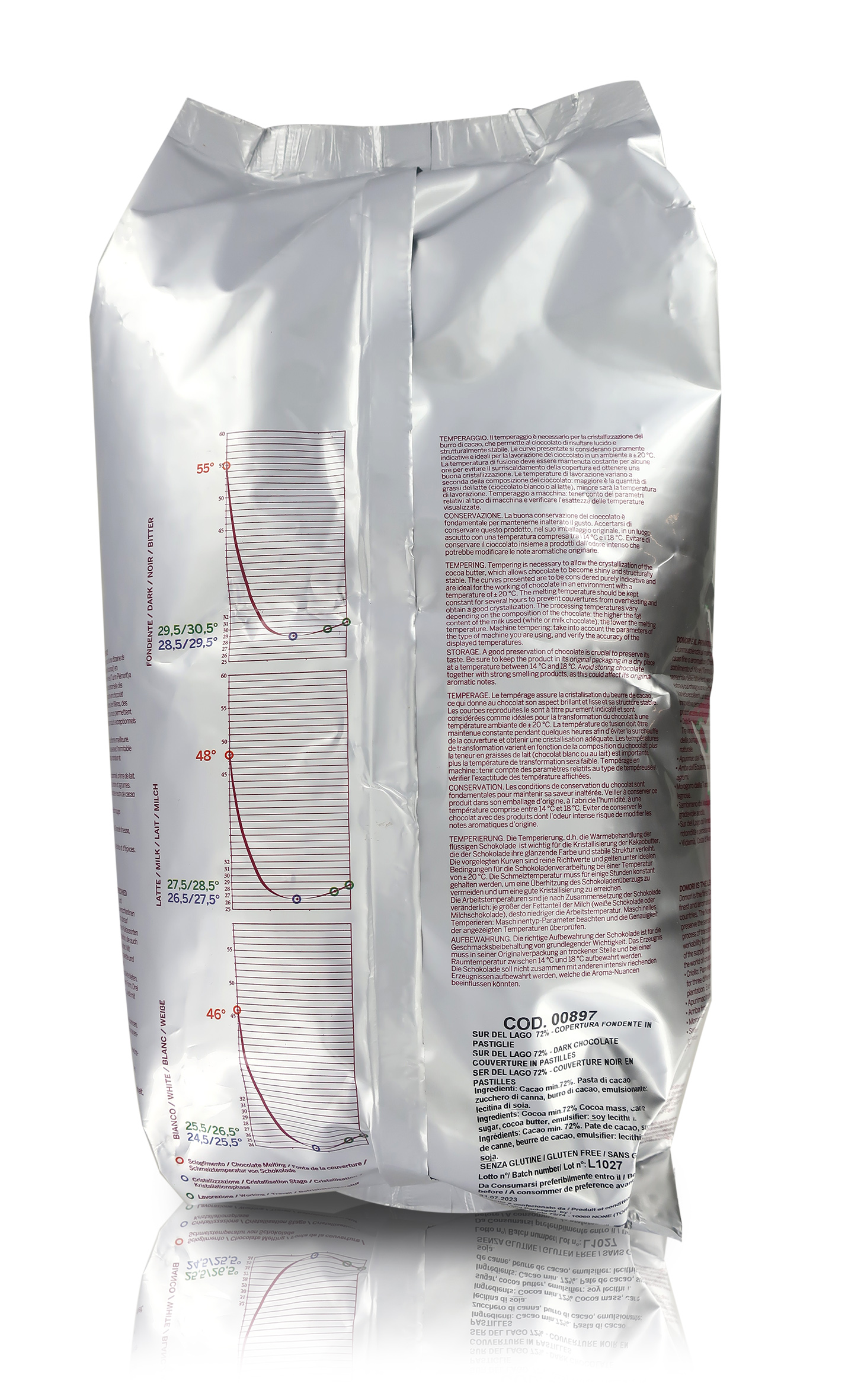 Consiglio d'utilizzo: raccomandato per la creazione di corpi cavi, ripieni, ricopertura, decorazioni, mousse e gelati. Possibile utilizzo per la pralineria.