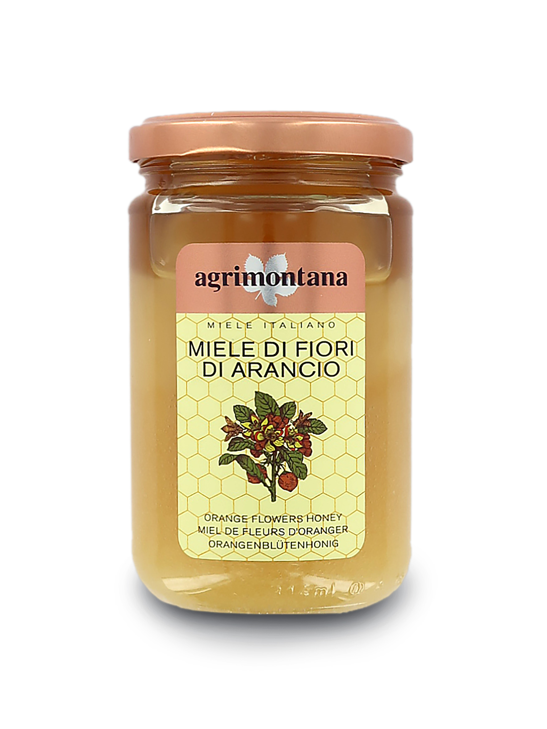 Il miele d'arancio Agrimontana è ottenuto senza trattamenti termici. È caratterizzato da cristalli grossi e un colore molto chiaro, tendente al bianco. Vanta un aroma intenso tra il floreale e il fruttato. Il gusto è delicato e agrumato.