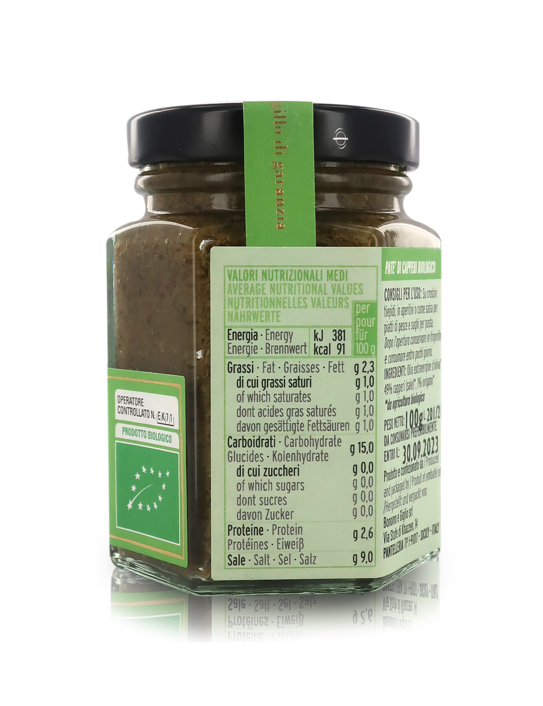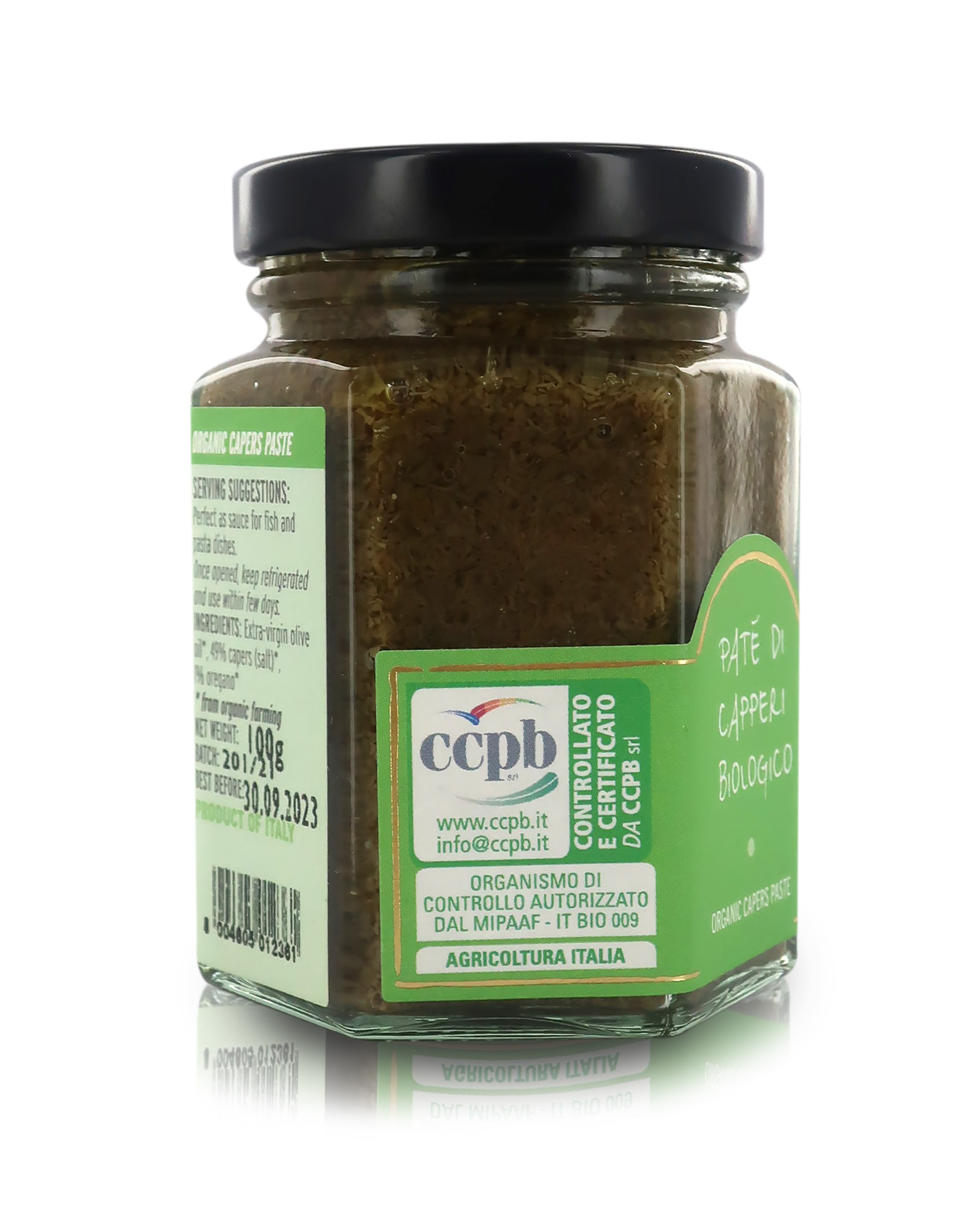 Paté vegetale realizzato con capperi biologici ottenuti esclusivamente da agricoltura italiana. Lo si consiglia su crostini tiepidi, in aperitivi o come salsa per piatti di pesce e sughi per pasta.