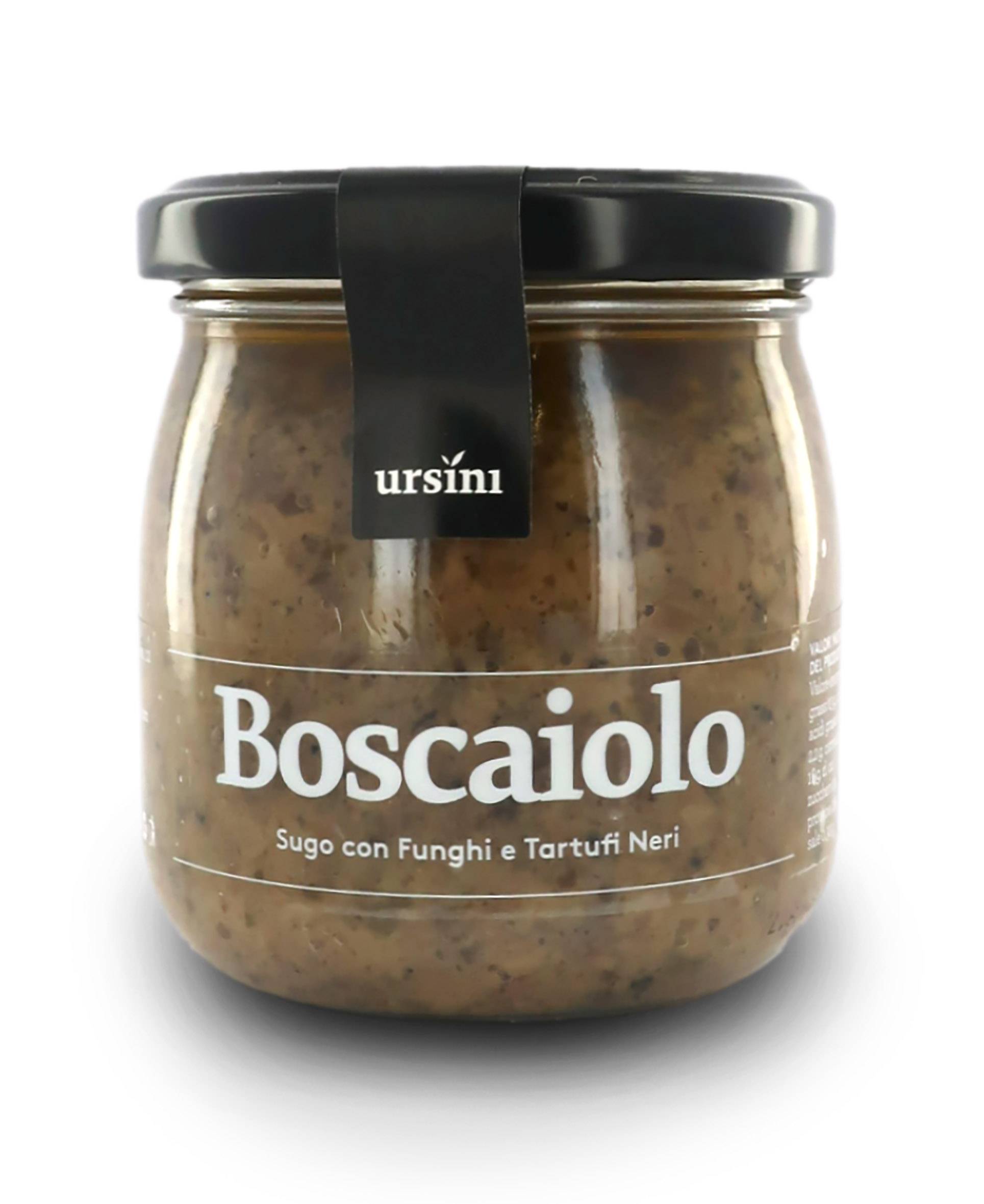 Il sugo Boscaiolo è un condimento realizzato con olio extravergine d'oliva Ursini, in cui funghi misti e tartufo sono protagonisti. Ottimo sugo per gli amanti dei sapori della terra, particolarmente indicato per condire le pappardelle.