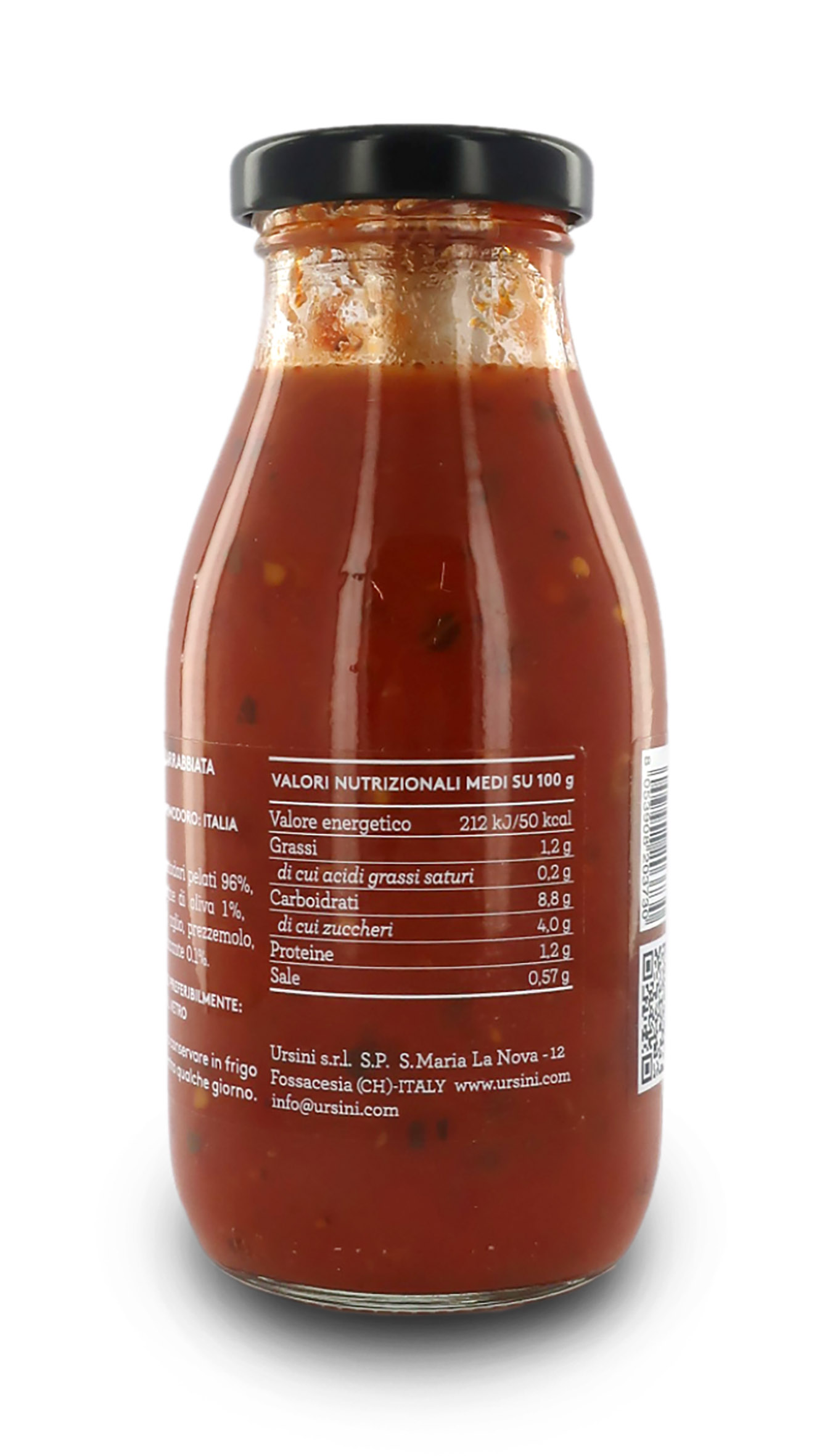 Ingredienti: pomodori pelati 96%, olio extravergine di oliva, basilico, sale, aglio, prezzemolo, peperoncino piccante 0,1%.