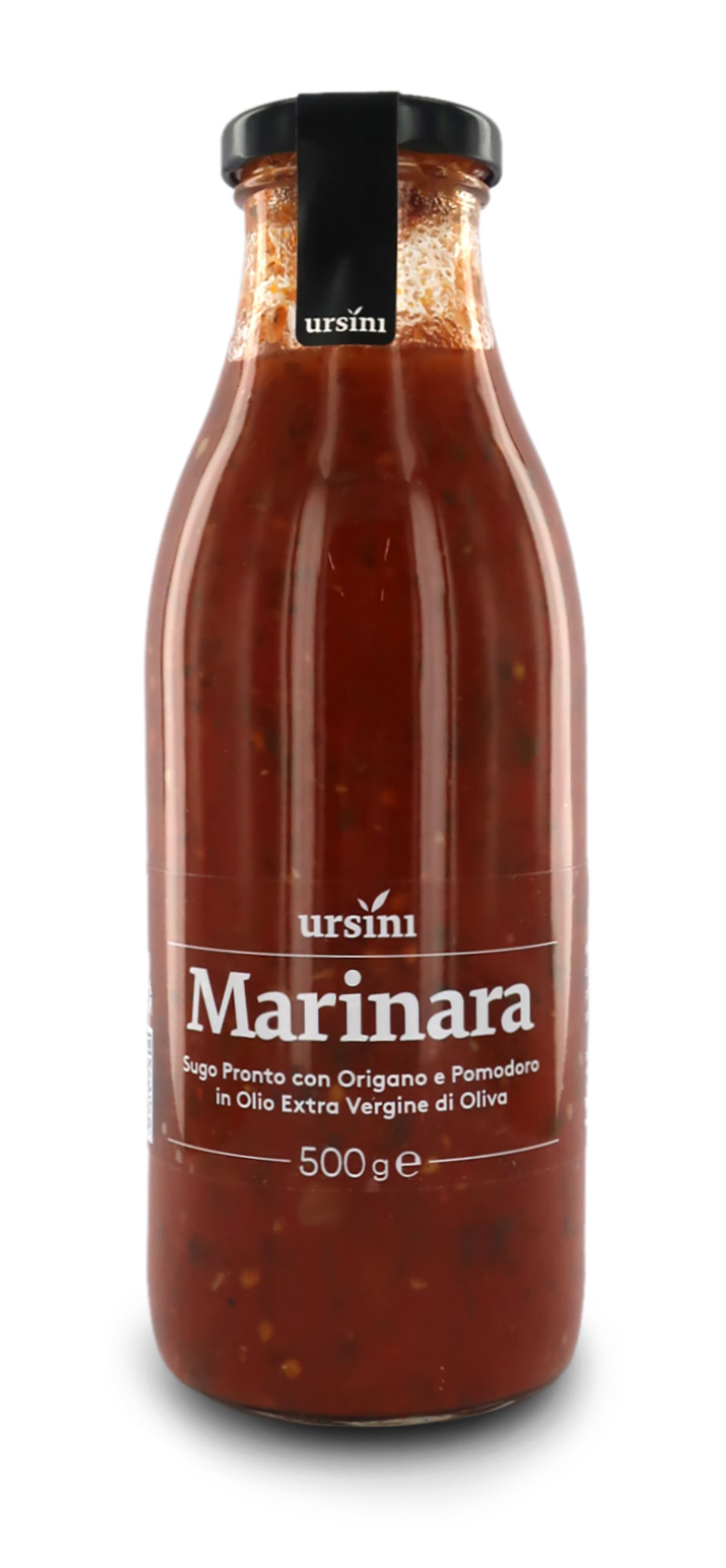 Sugo al gusto classico "marinara", pronto da scaldare e da consumare. Contiene pomodoro, origano e olio extravergine di oliva, ed è insaporito con prezzemolo, cipolla, basilico, aglio e pepe. La semplicità e la genuinità del gusto del pomodoro sono protagoniste in questo sugo, condimento tra i più classici della tradizione culinaria italiana.