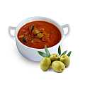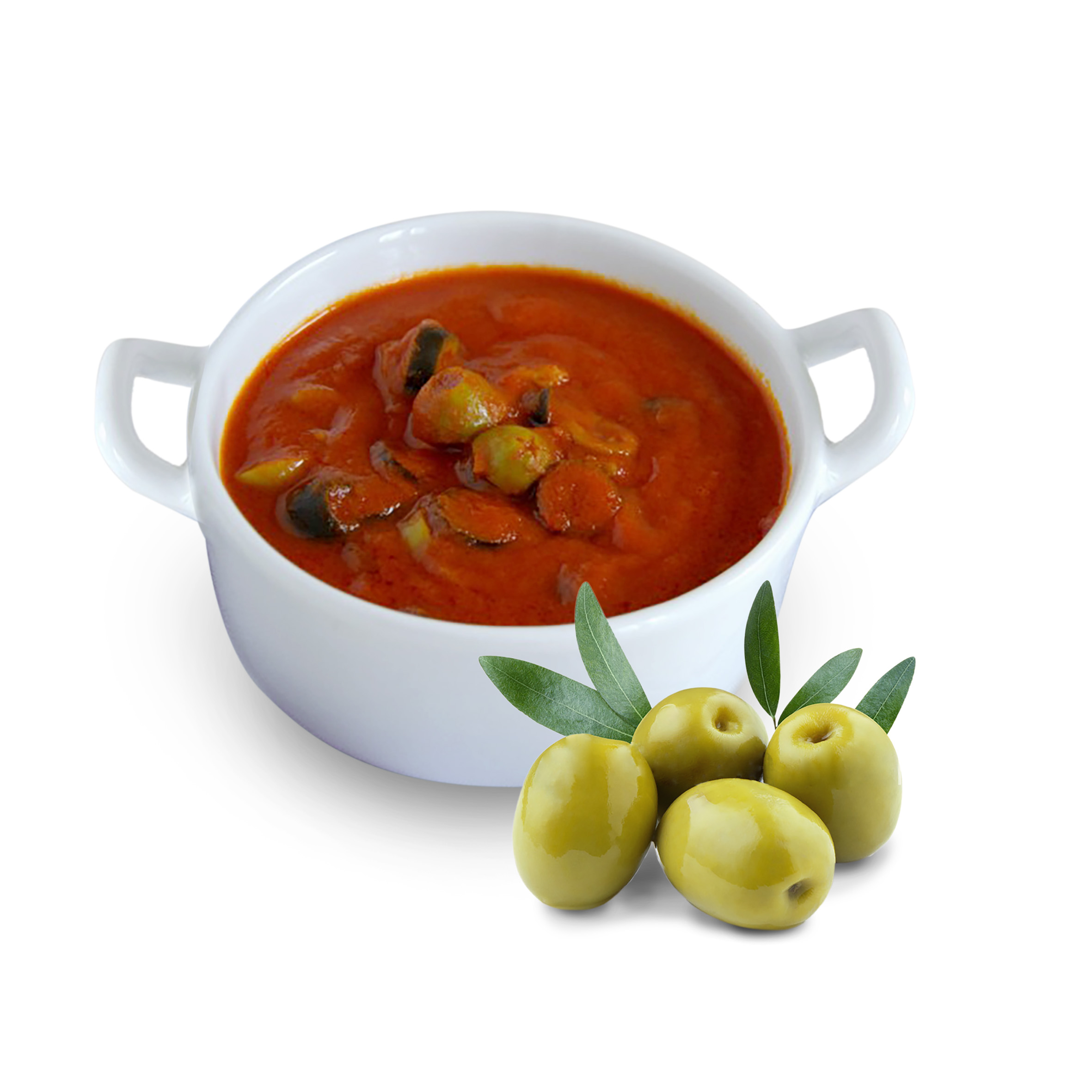 Sugo al pomodoro e olive, in olio extravergine di oliva, pronto da scaldare e da consumare. Contiene pomodori pelati e olive in salamoia, ed è insaporito da basilico, prezzemolo, sale, aglio e cipolla. La semplicità e la genuinità del gusto del pomodoro e delle olive sono protagoniste in questo sugo, condimento tra i più amati dagli italiani.