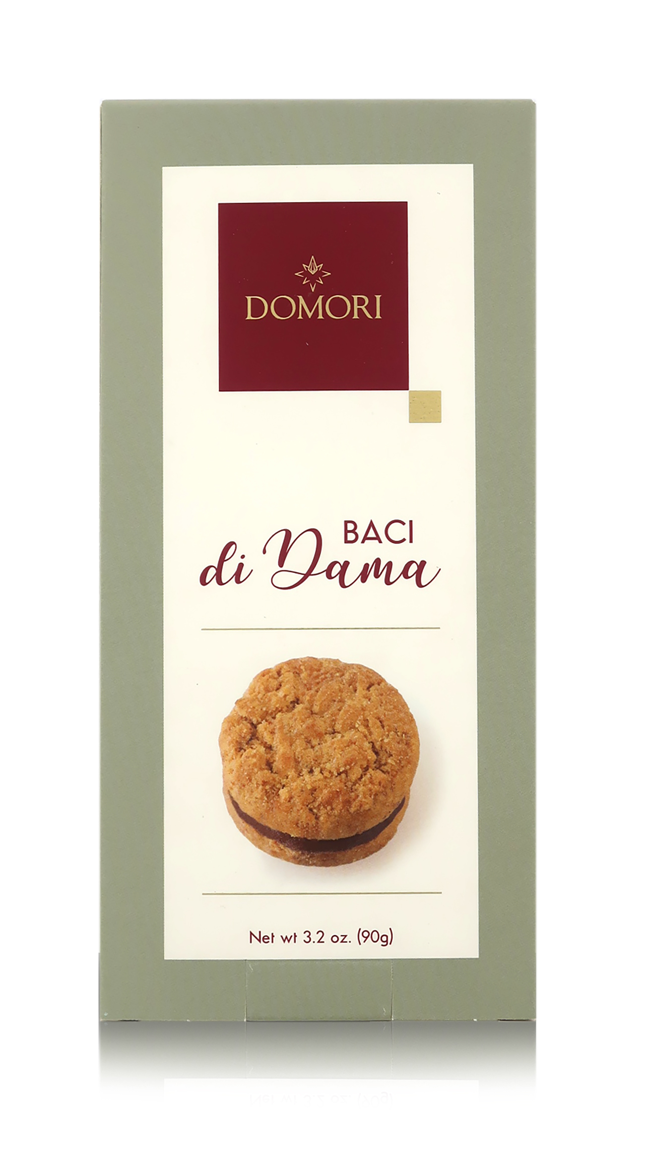 Peso: 90g per singolo astuccio x 6 = 0,54 kg. Ogni bacio di dama pesa 15g.